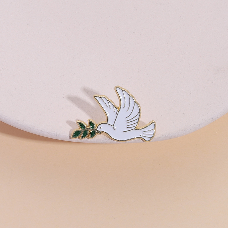 動物の飛鳥と平鳩のオリーブの枝のブローチのカバンの筆の袋の金属のバッジの服の襟の針の精巧な贈り物の卸売り