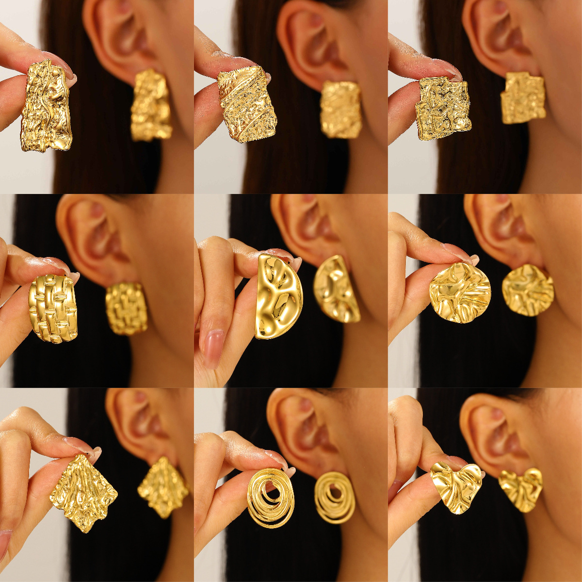 欧米の個性のハンマーの紋様の不規則なイヤリングの女性のステンレスの四角形の木目のピアスの高級感の気質の耳飾りのクロスボーダー