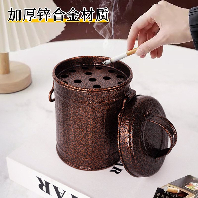 源工場亜鉛メッキ鉄バケツ型灰皿デスクトップレトロ金属灰皿輸出バケツ蓋付き