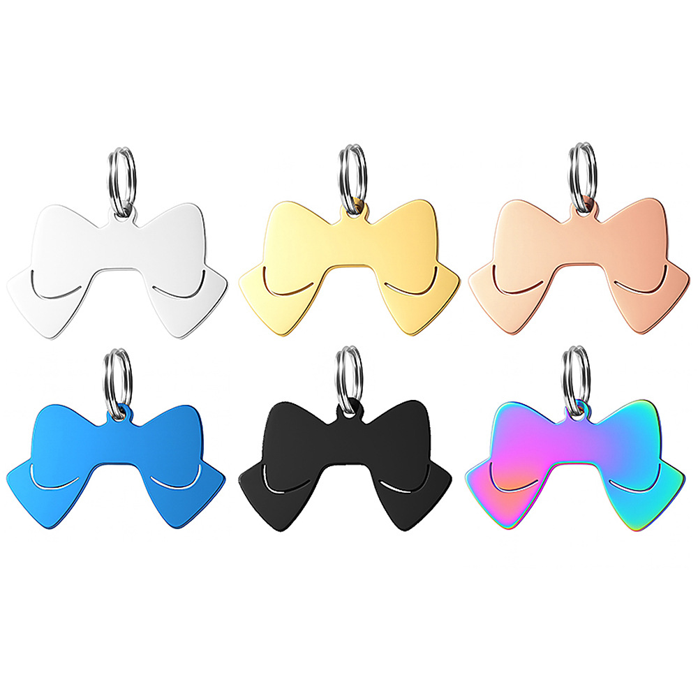 跨境新款不锈钢蝴蝶结吊坠军牌狗牌DIY刻字金属宠物挂牌工厂批发