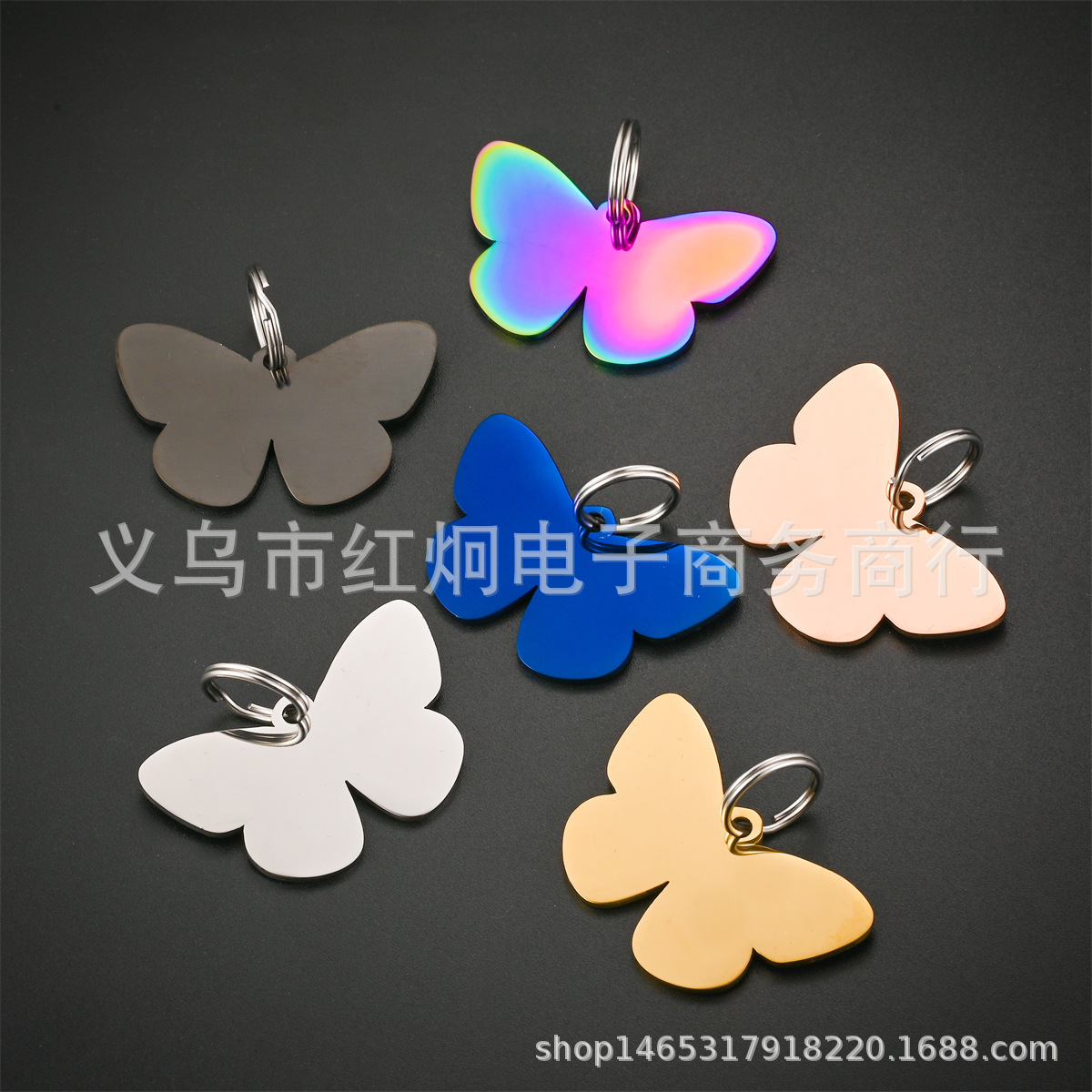 スポット卸売ステンレス鋼蝶形ペットタグチタン鋼蝶タグ犬タグ猫タグ diy ペット紛失防止タグ