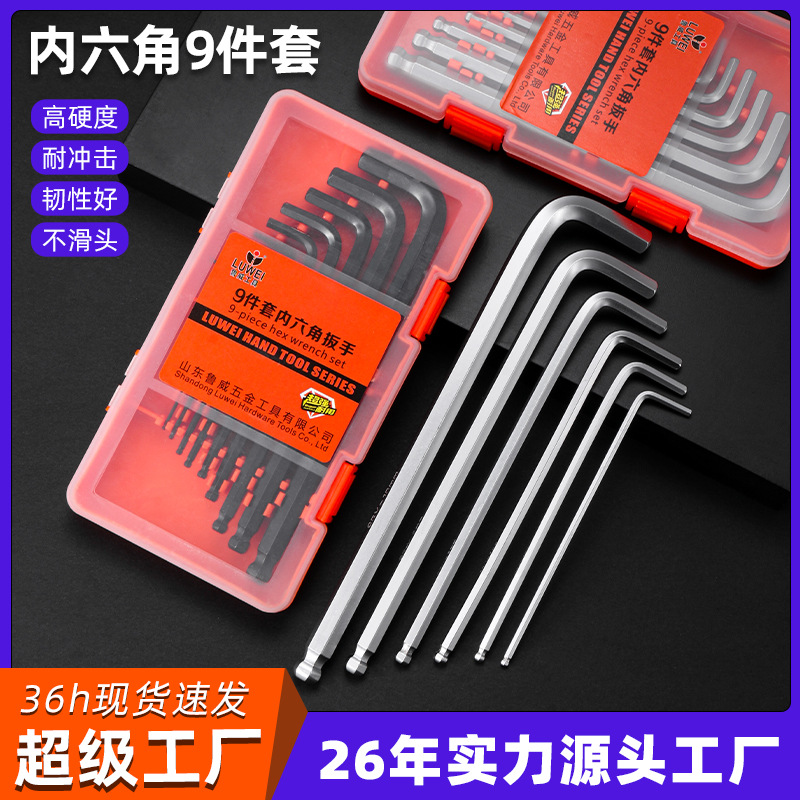 魯威工具L型内六角レンチセット9点セット内六角ドライバーボールヘッド内六角板手セット