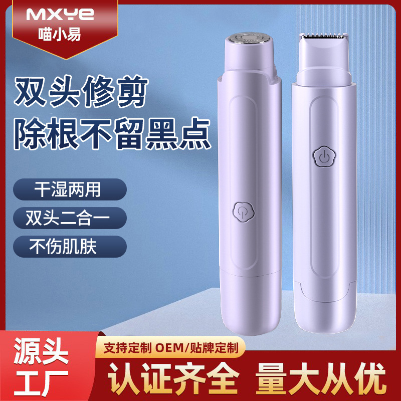 ワイヤレス両頭シェーバー、ポータブル充電式小型電動陰部シェーバー、シェービングナイフ、女性用脱毛器