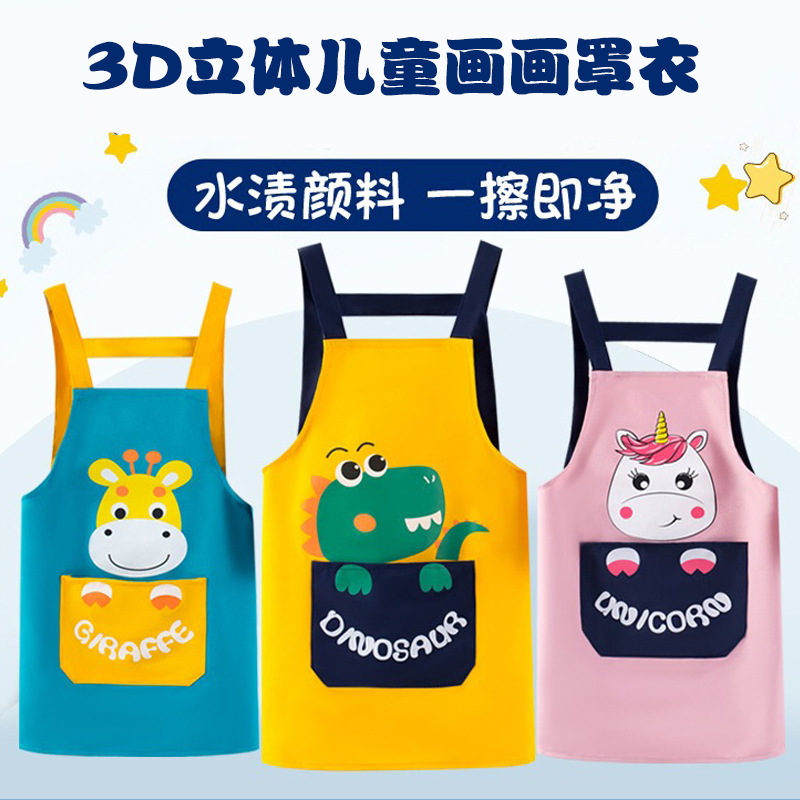 新しい幼稚園プリント子供用エプロン 3 点セットベビー絵画服防水防汚キッチン家事スモック
