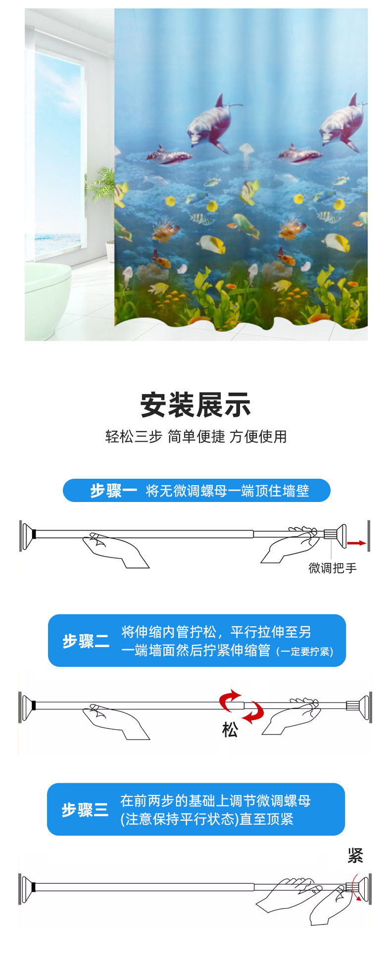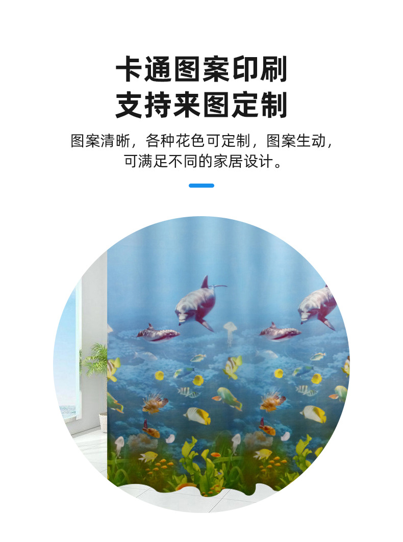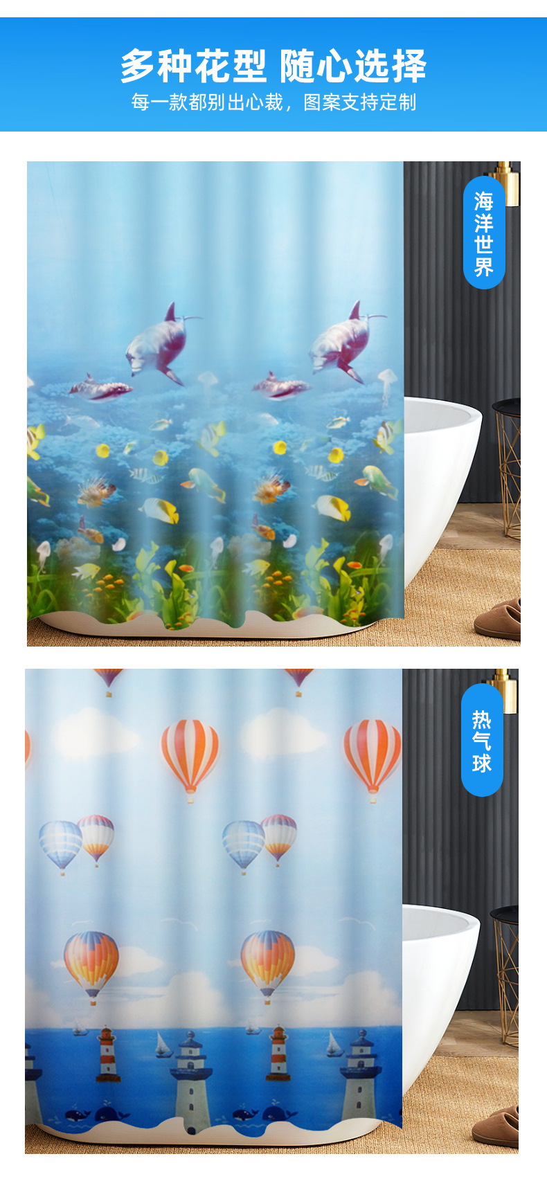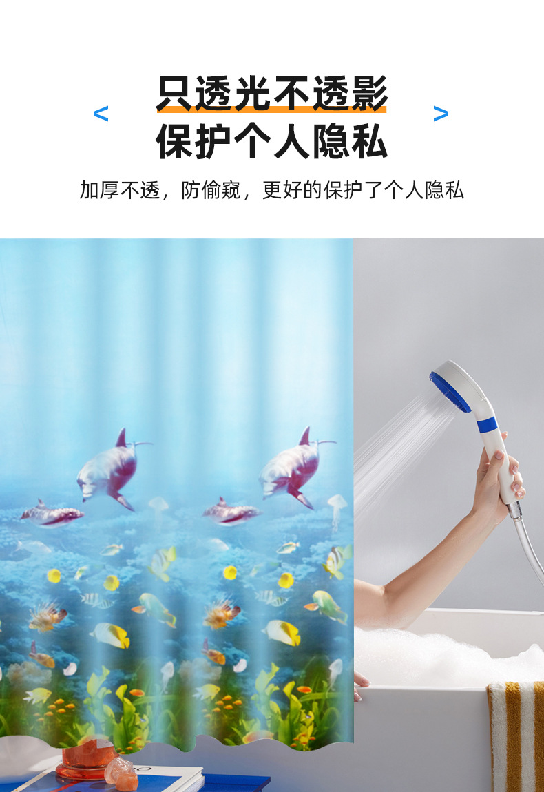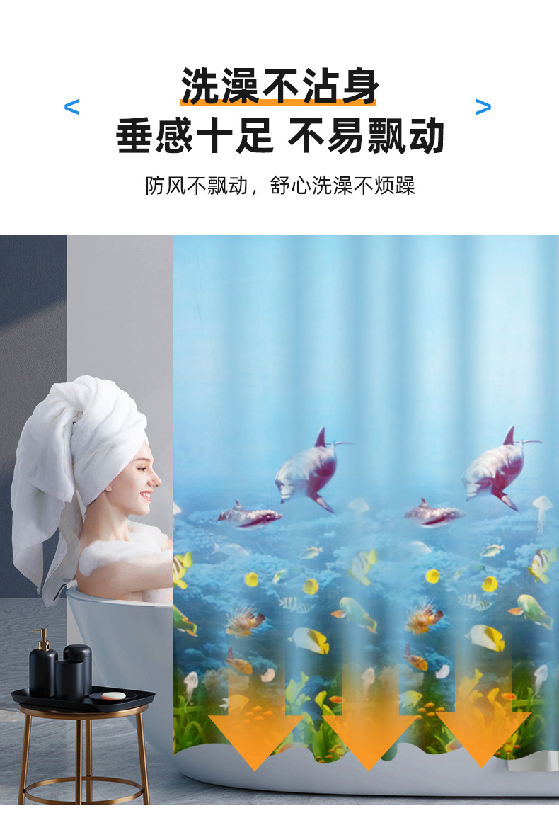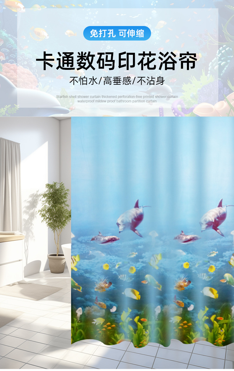 クロスボーダー PEVA シャワーカーテンオーシャンワールドデジタル印刷浴室カーテンパンチフリー防水防カビ肥厚シャワーカーテン