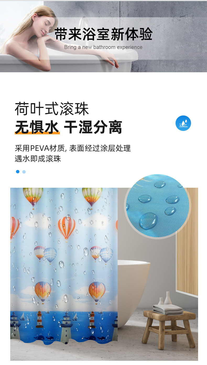 国境を越えた新型peva木の葉シャワーカーテントイレ穴なし乾湿分離遮断カーテン防水防かびシャワーカーテン
