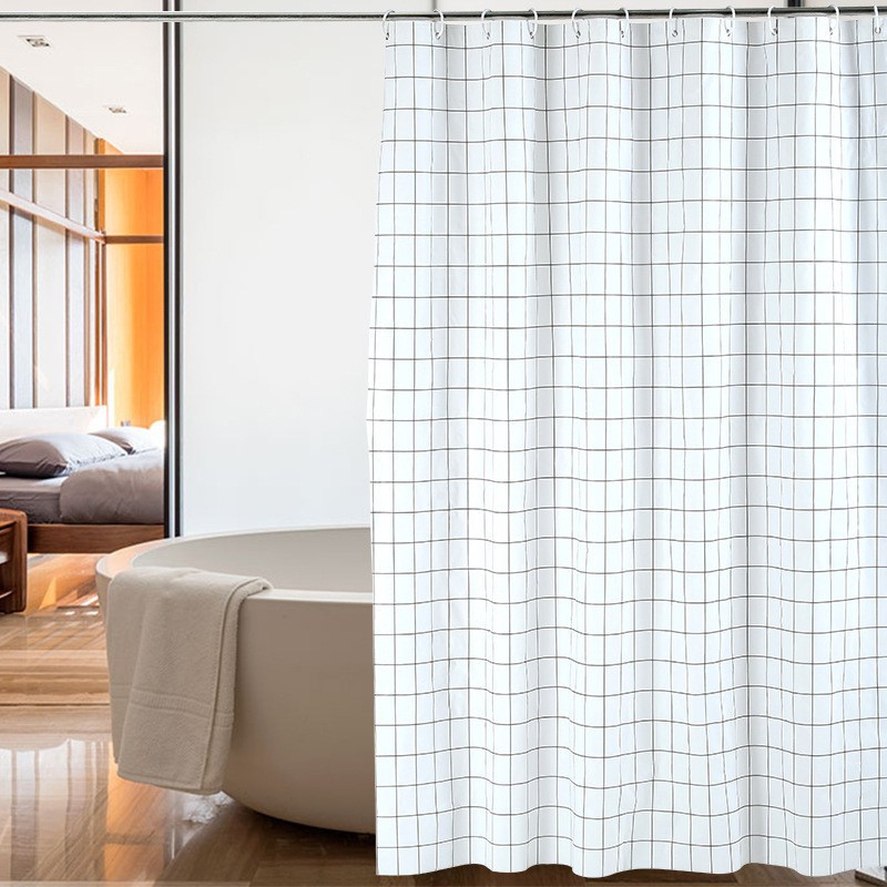 アマゾンの大方眼シャワーカーテンpeva防水浴室遮断カーテントイレの厚い穴なしシャワーカーテン