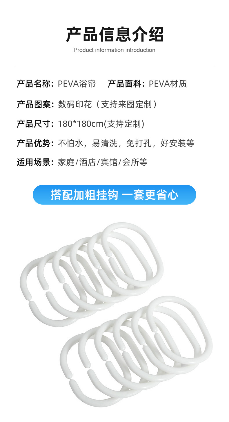 クロスボーダーpevaクジラシャワーカーテントイレ防水防カビ浴室遮断カーテン穴なしフック付きシャワーカーテン