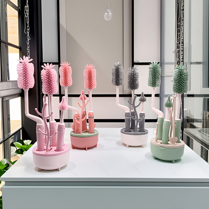 ベビー専用シリコンミルクボトルブラシ360度回転三色长柄洗浄ブラシセット洗浄ミルクボトルブラシセット