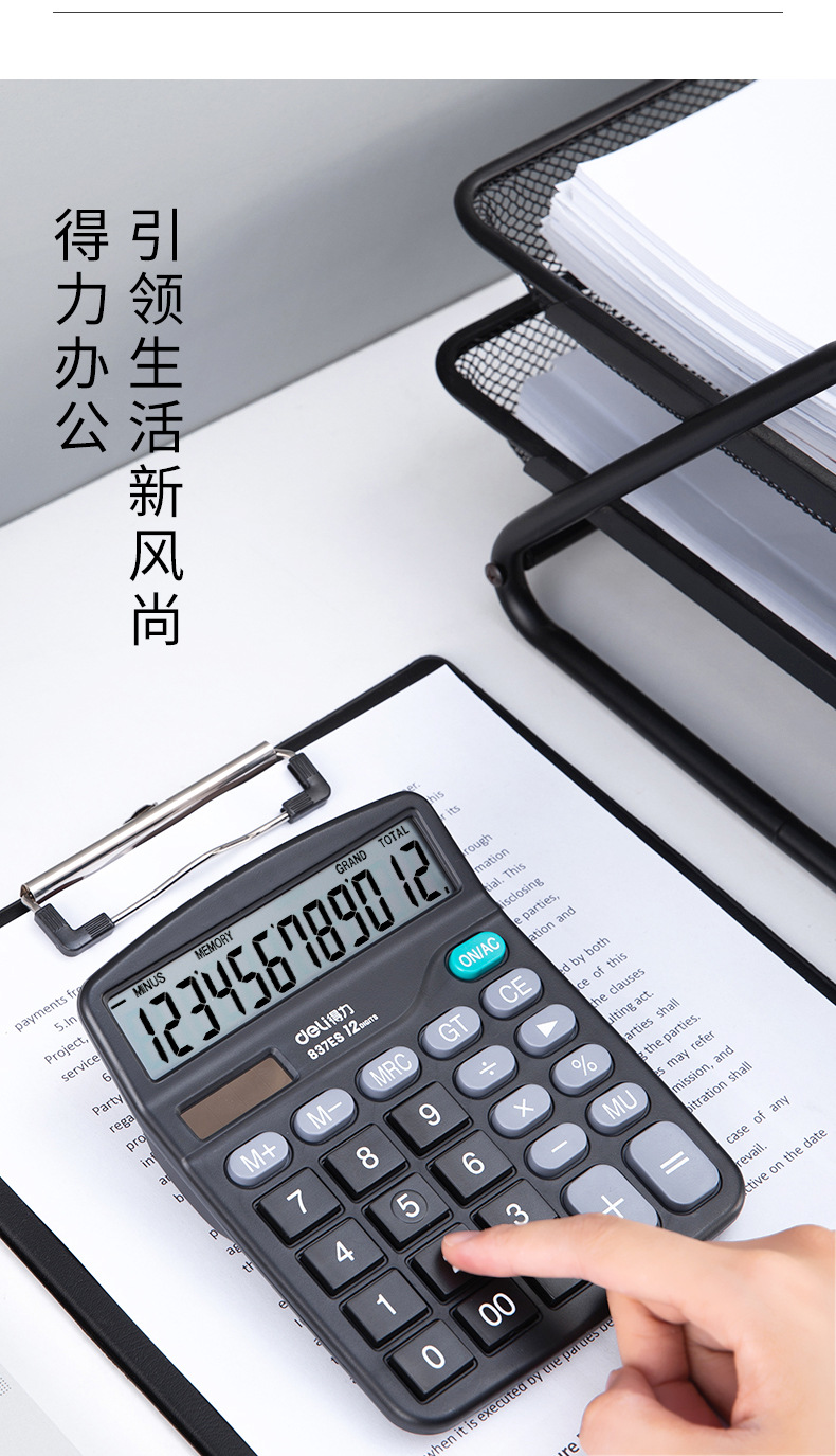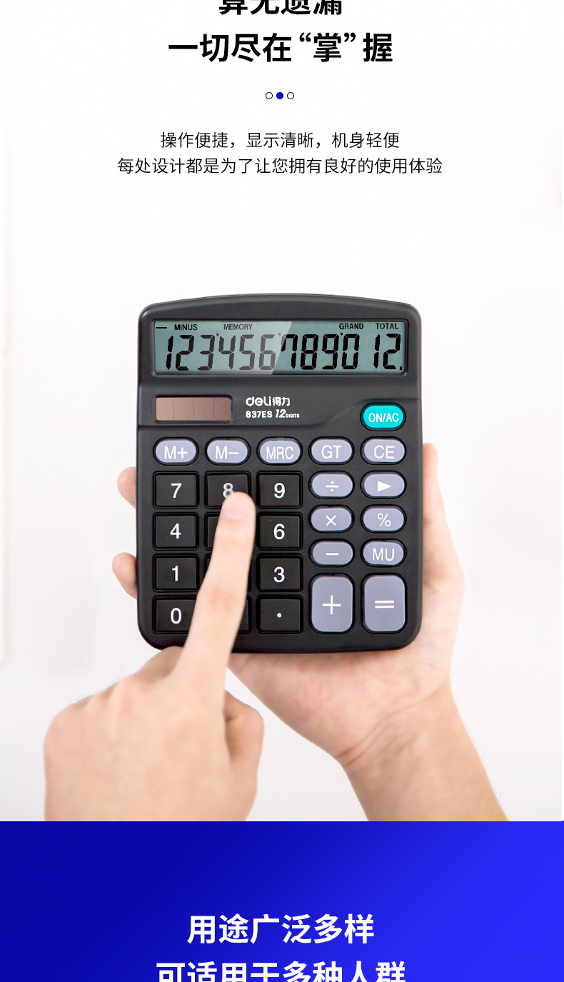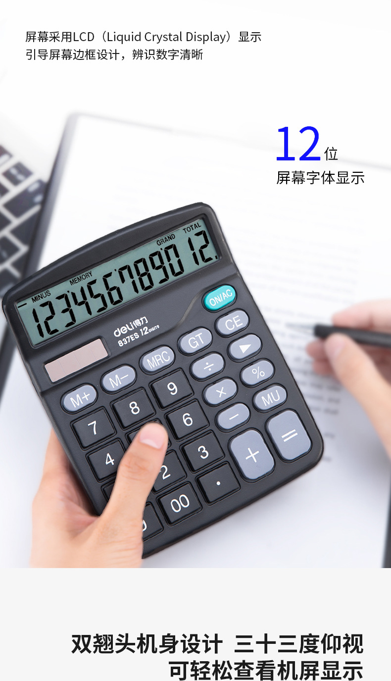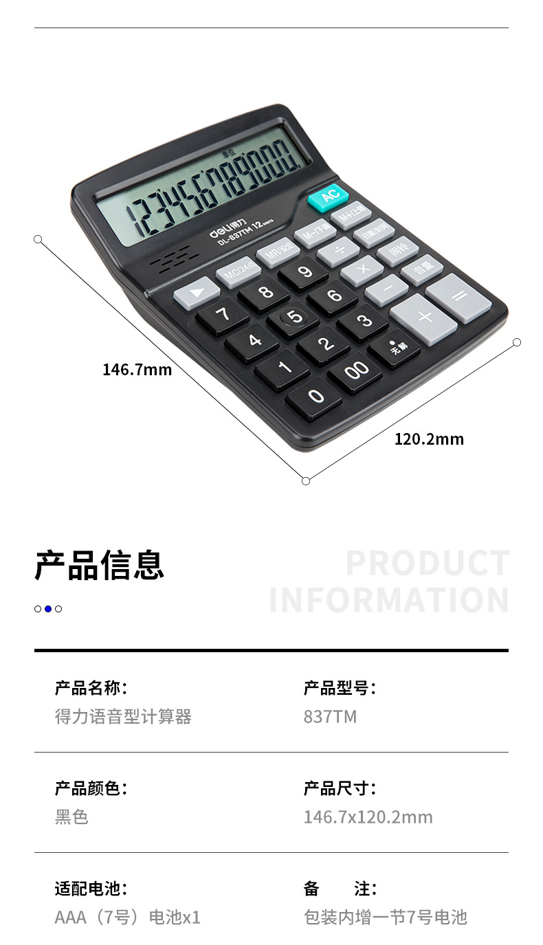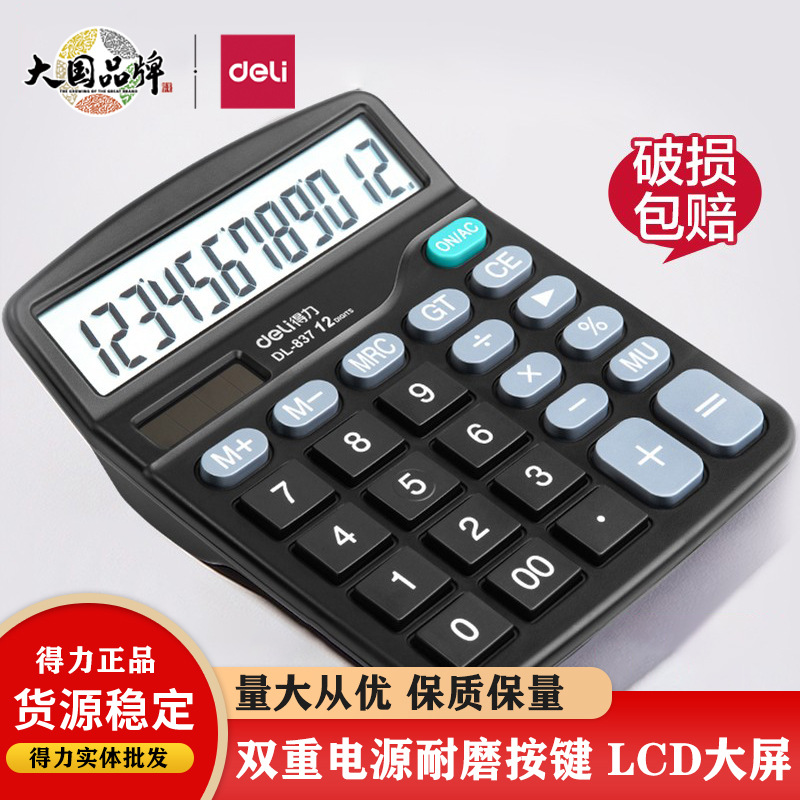 得力837计算器办公用会计用太阳能学生用带语音大学财务小号便携
