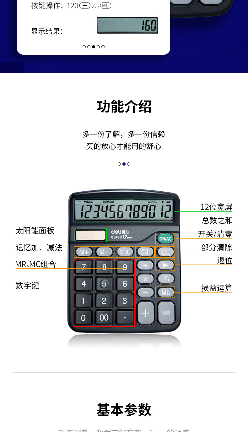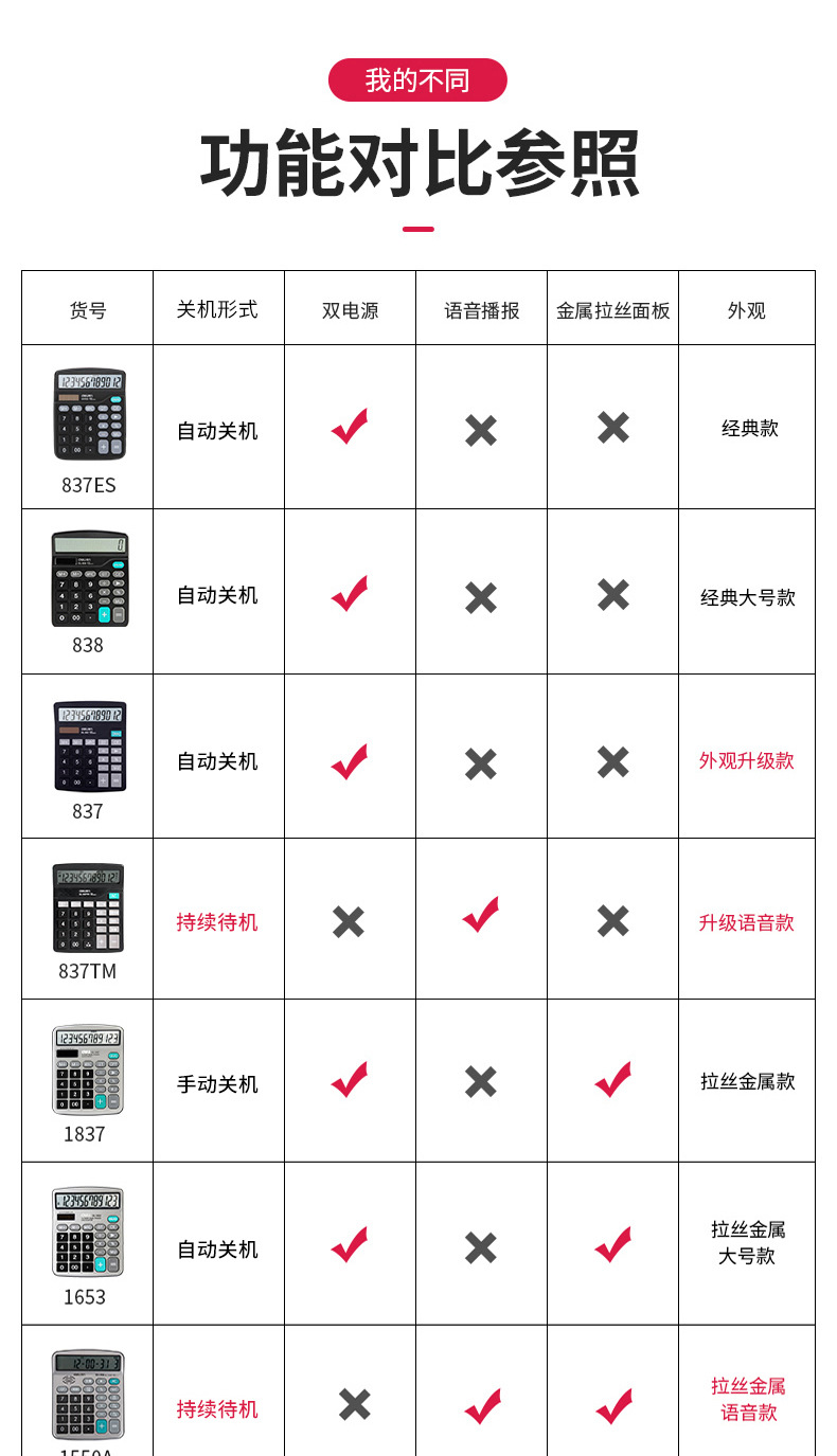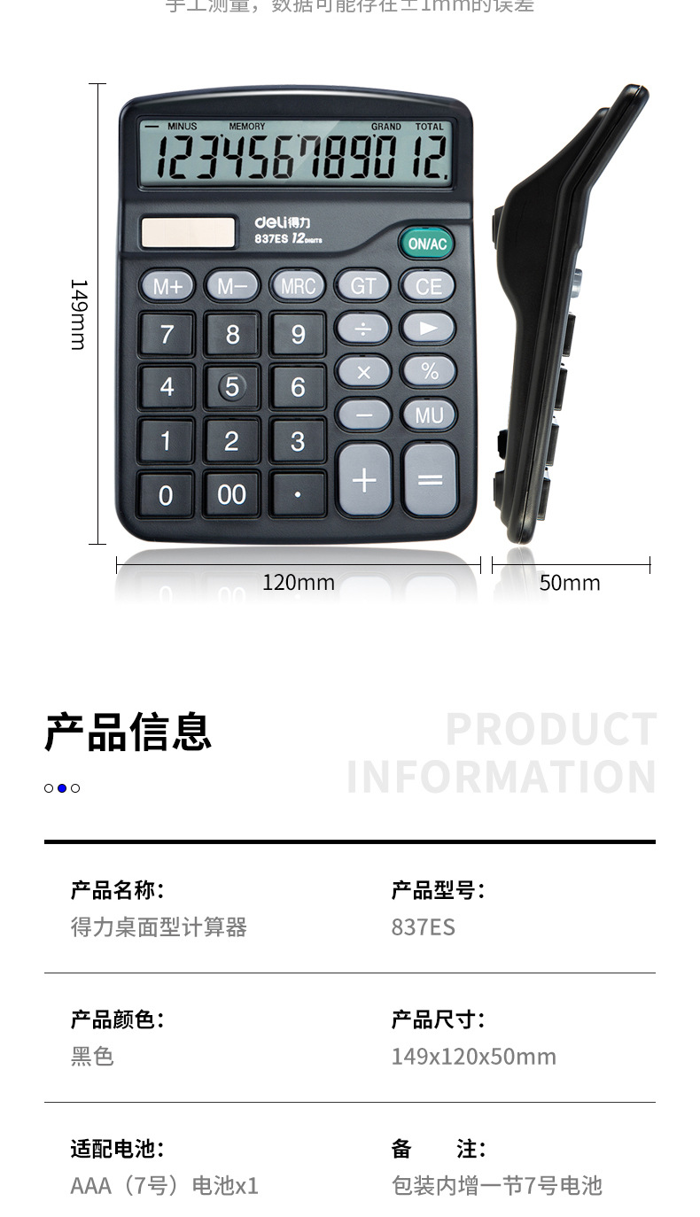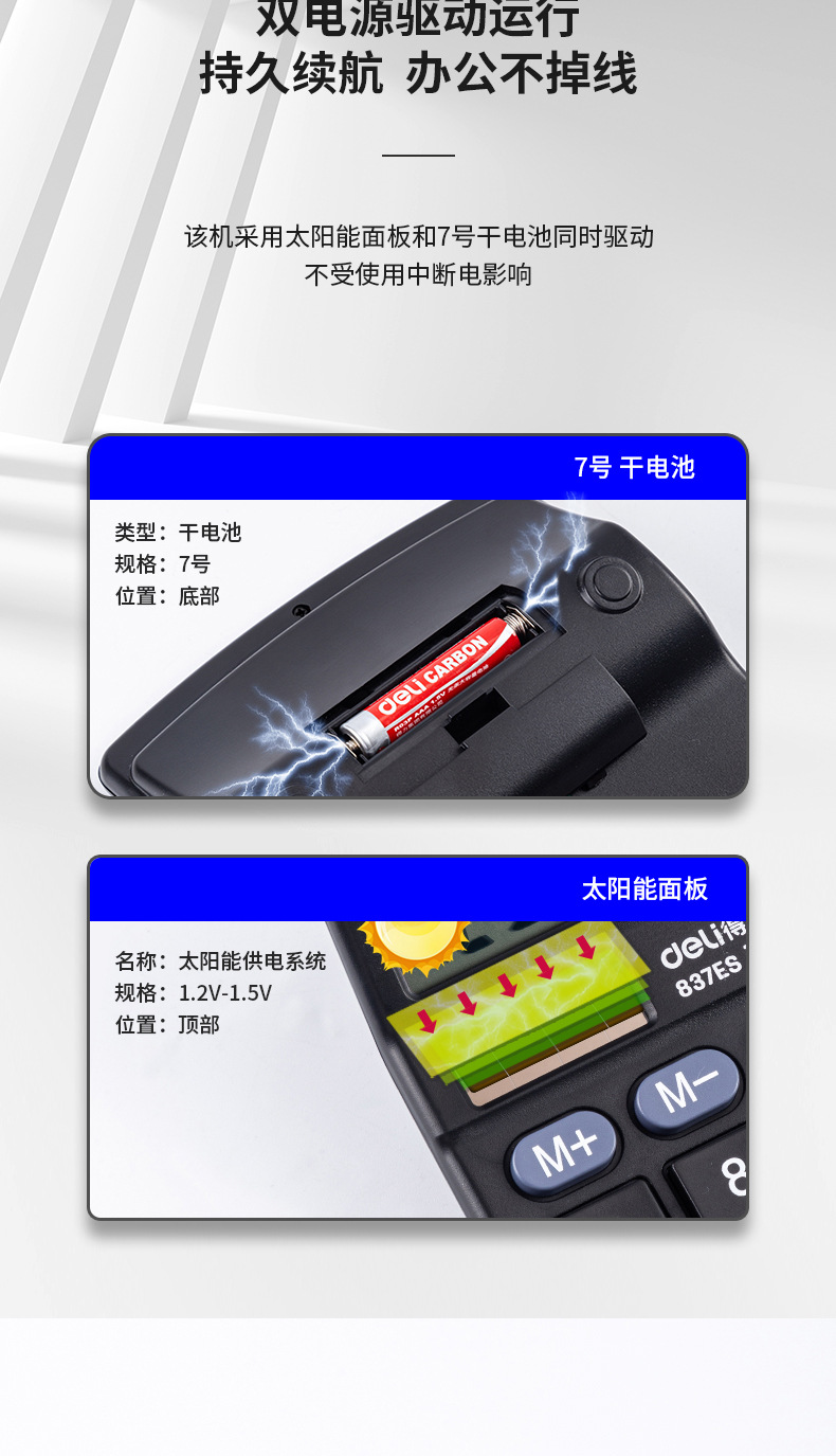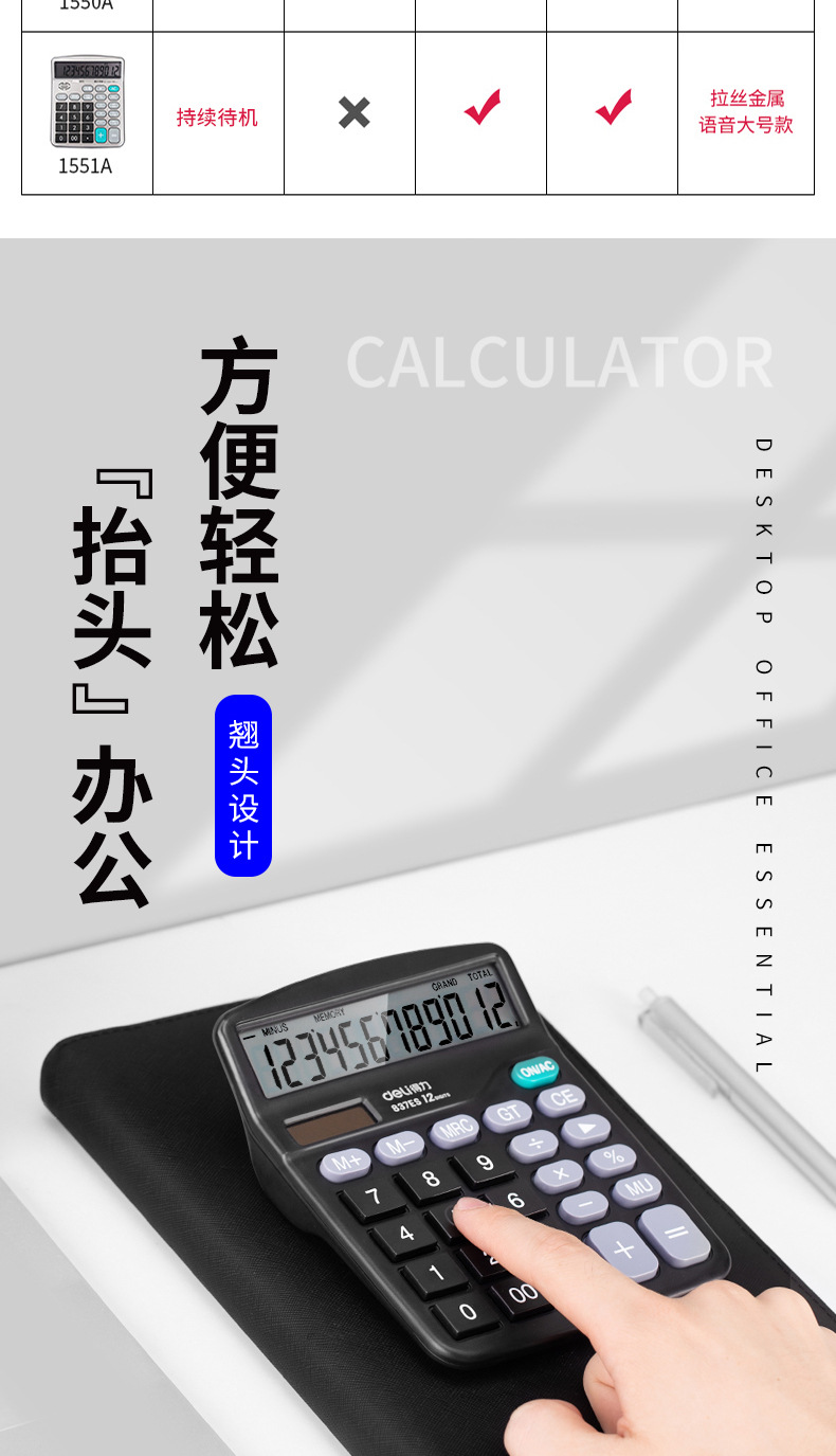 得力837计算器办公用会计用太阳能学生用带语音大学财务小号便携