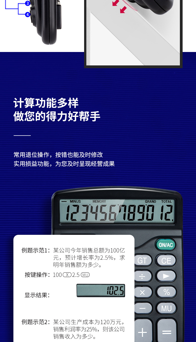 有力837電卓事務用会計用太陽エネルギー学生用音声付き大学財務トランペット携帯