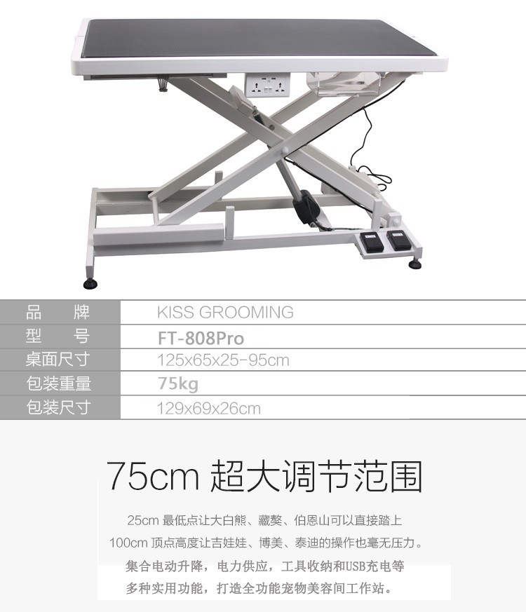 集合电动升降,电力供应,工具收纳和USB充电等多种实用功能,打造全功能宠物美容间工作站