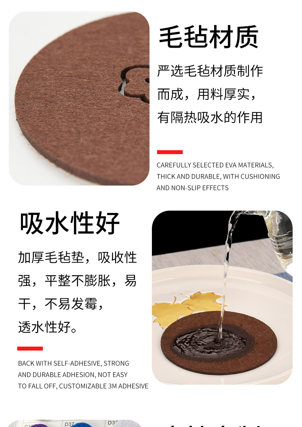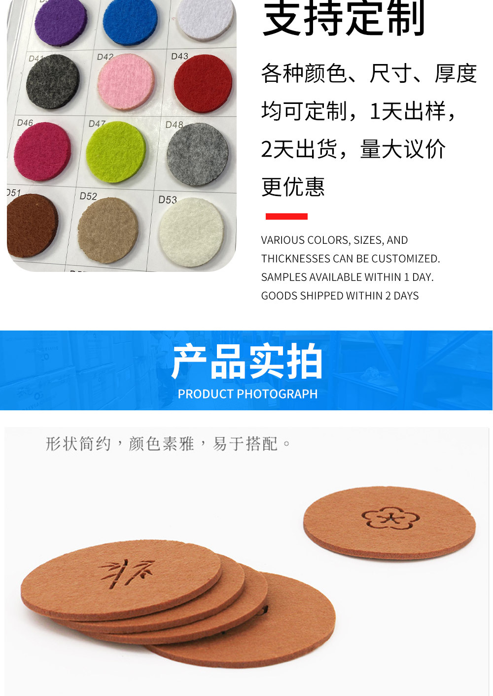 ラウンドフェルトコースター厚手ワイングラスバーマットテーブルティーポット断熱カップマット滑り止め吸水コーヒーカップホルダー