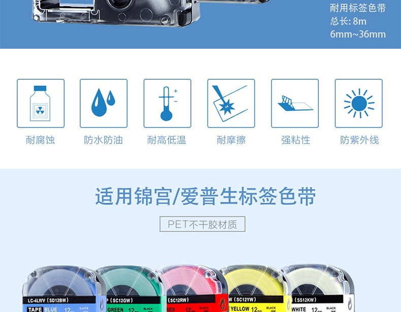 錦宮ラベル機リボン12mm貼り普楽sr230chラベル紙epson錦宮プリントテープを適用する
