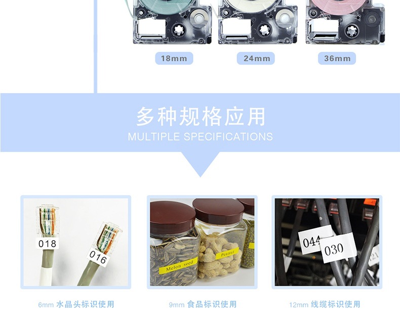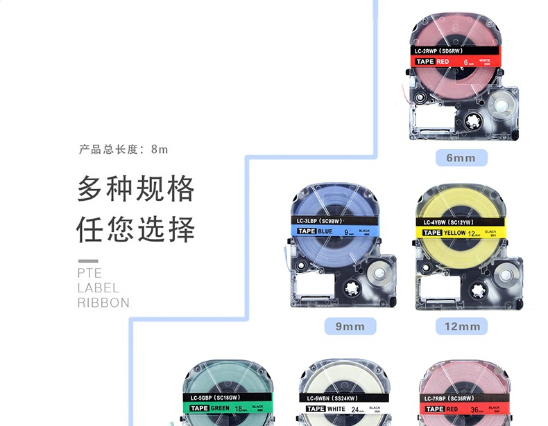 適用EPSOM錦宮ラベルプリンタSR230CH白地黒字6/9/12/18/24mmメーカー直販