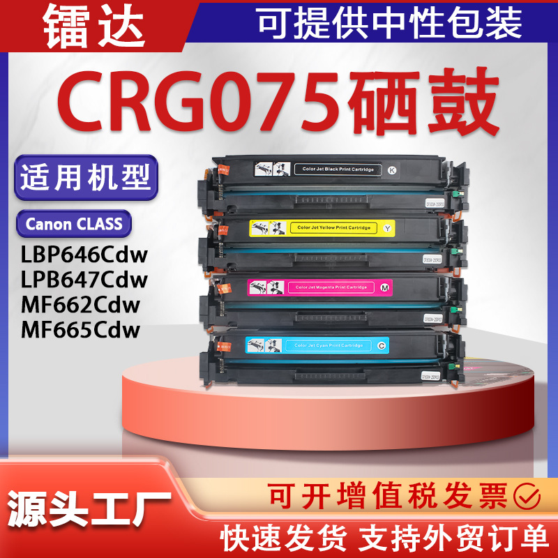 适用佳能075硒鼓佳能MF665CdW彩色硒鼓LBP647Cdw碳粉CRG075K墨盒
