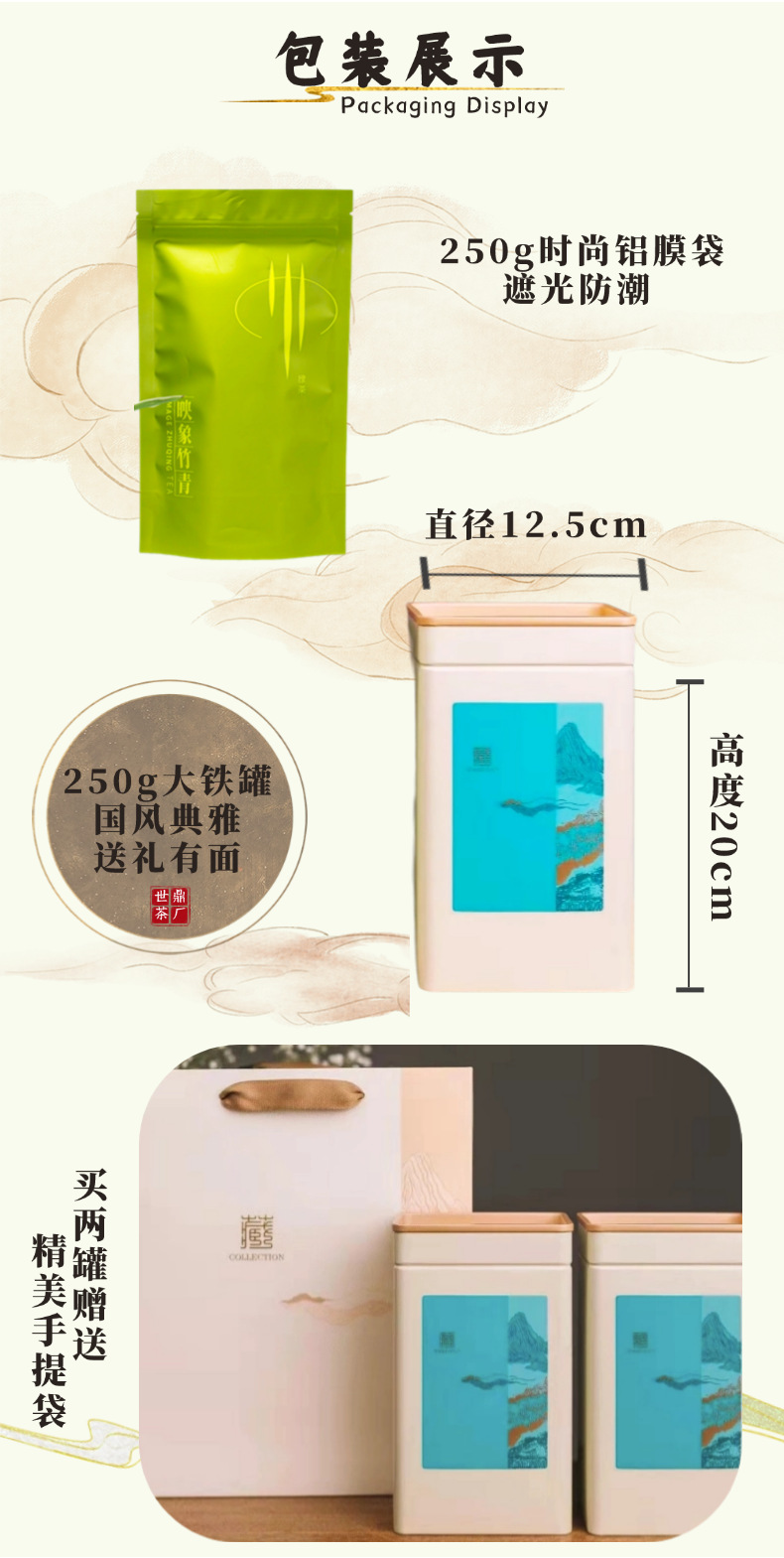 パッケージ仕様 清鎮8号半斤アルミフィルム袋,Cuiya No.7 半斤アルミフィルム袋,竹清鳥タン6号半斤アルミフィルム袋,竹清鳥タン5号半斤アルミフィルム袋,竹清鳥タン4号半斤アルミフィルム袋,竹清鳥タン3号半斤アルミフィルム袋,竹清鳥タン2号半斤アルミフィルム袋,竹清鳥タン1号半斤アルミフィルム袋,龍雅B 半斤袋,龍雅 半斤アルミフィルム袋,8日半斤ギフトボックス (より多くのデザインは、お客様にお問い合わせください。内蔵茶を交換できます),8号半斤1缶(250g/缶、2缶合計0.5kg個、無料手提げ袋)