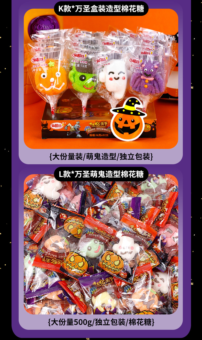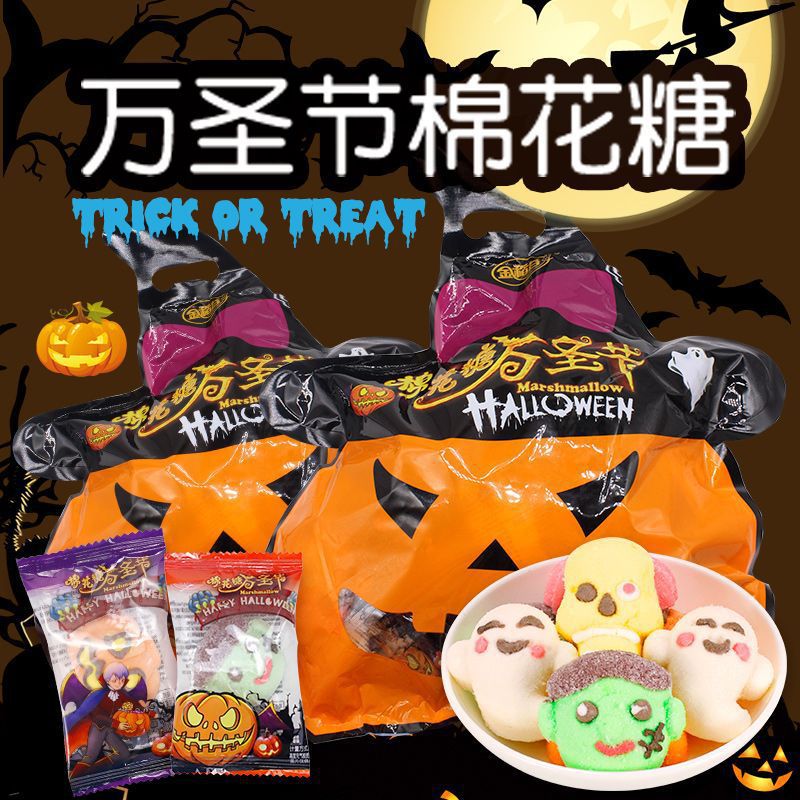 万圣节糖果500g南瓜头棉花糖分享装搞怪趣味聚会派对小吃零食批发