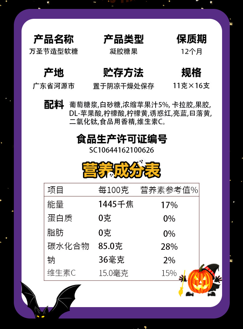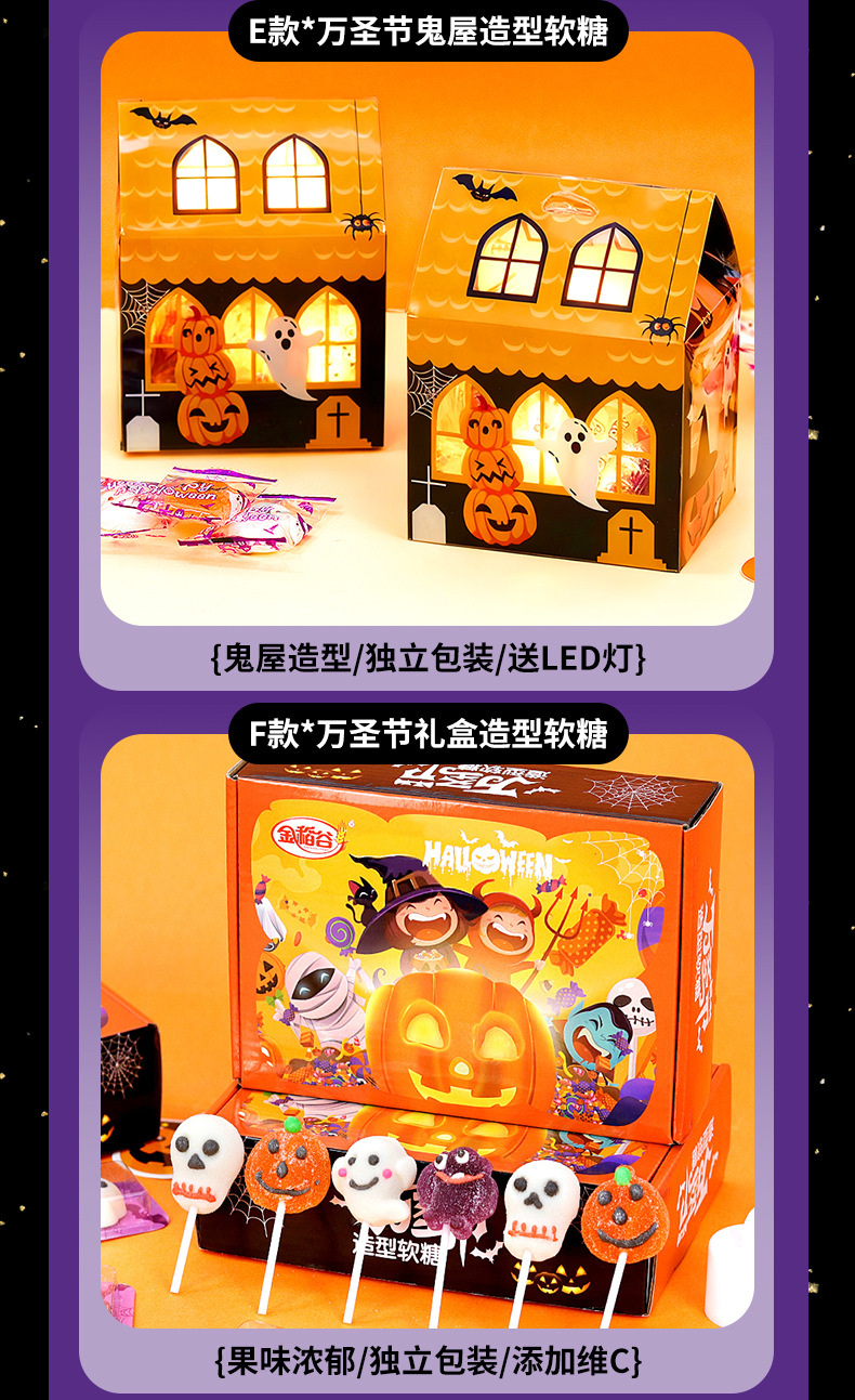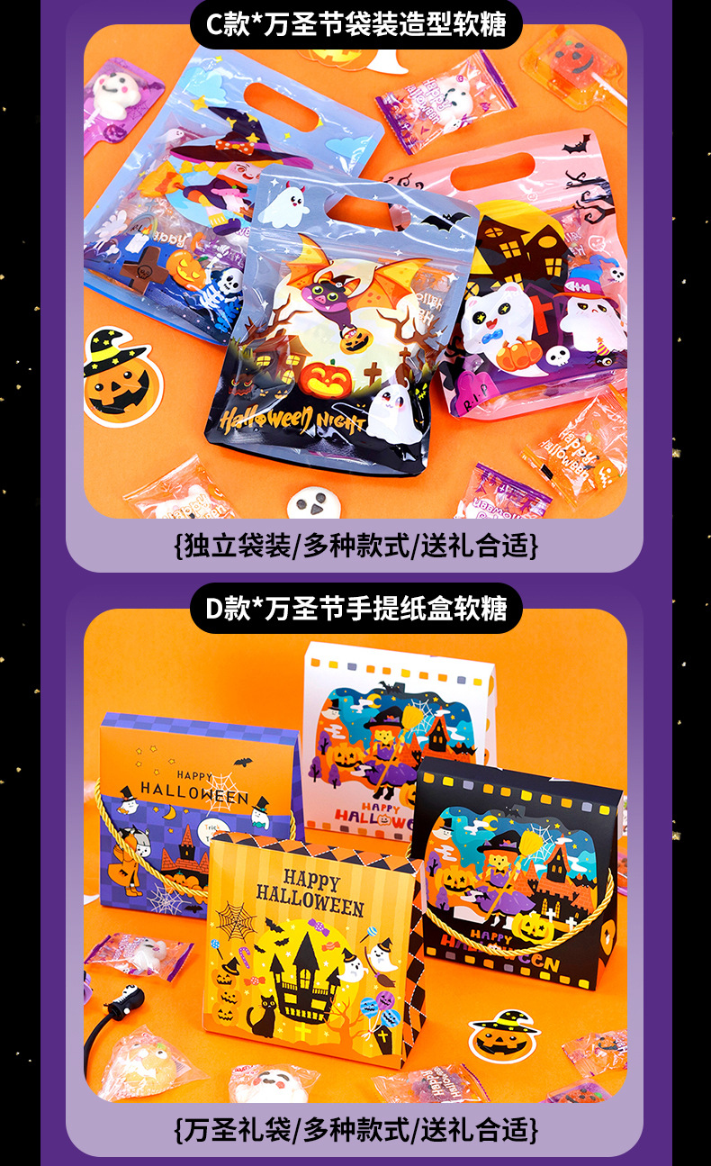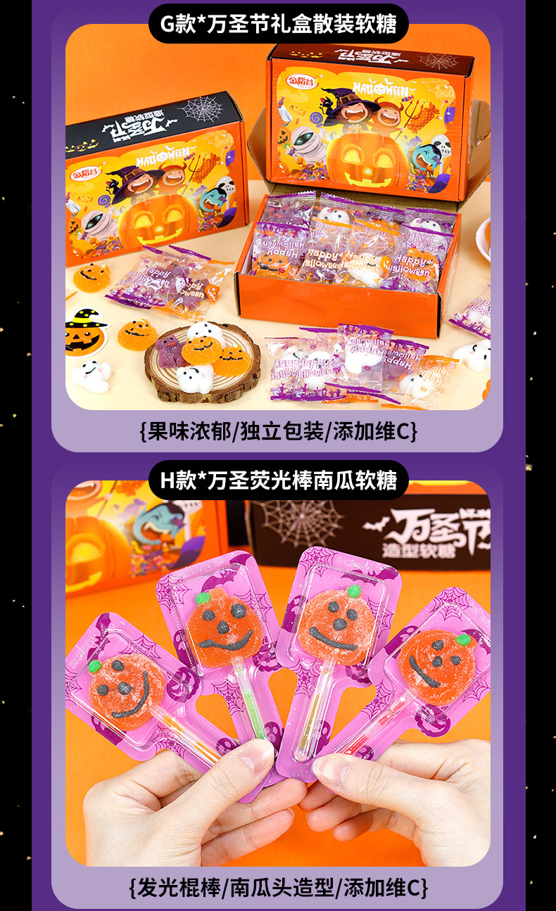 176g万圣节糖果礼盒趣味幽灵蝙蝠南瓜造型棒棒软糖零食伴手礼批发