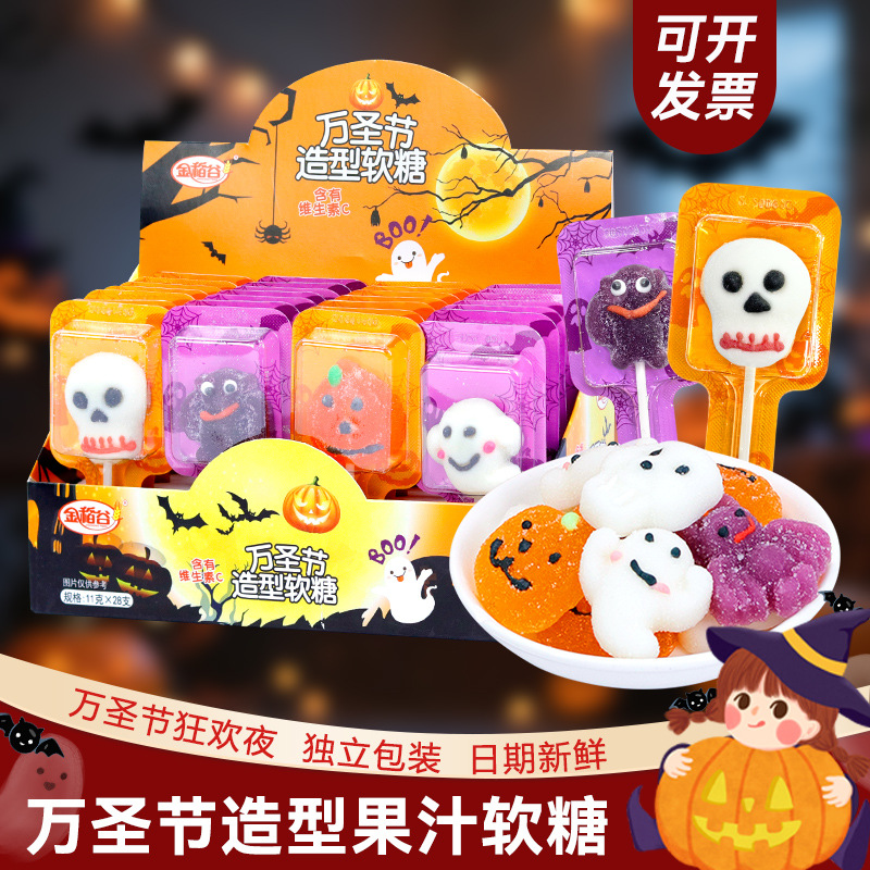 万圣节糖果南瓜头造型软糖趣味创意棒棒糖分享装儿童零食礼物批发