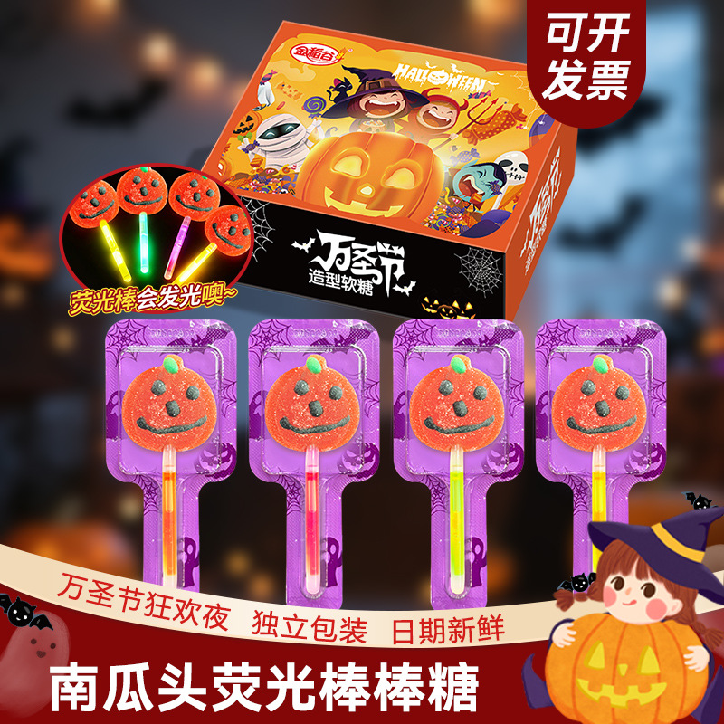 万圣节南瓜头荧光棒棒糖送纹身贴分享装糖果儿童零食节日礼物批发