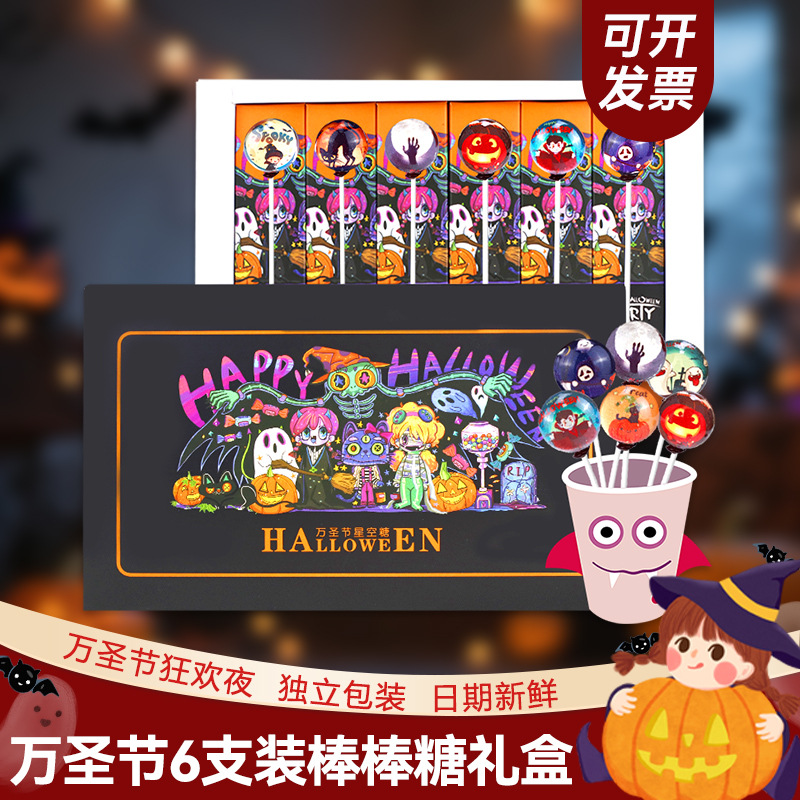六支装万圣节棒棒糖礼盒魔幻星空棒棒糖节日礼物糖果儿童零食批发