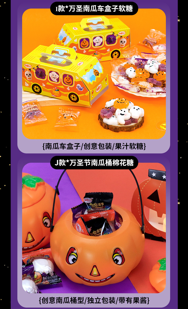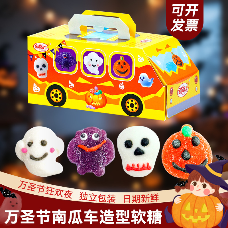 万圣节糖果创意南瓜车盒装糖果趣味果汁软糖儿童零食礼物商超批发