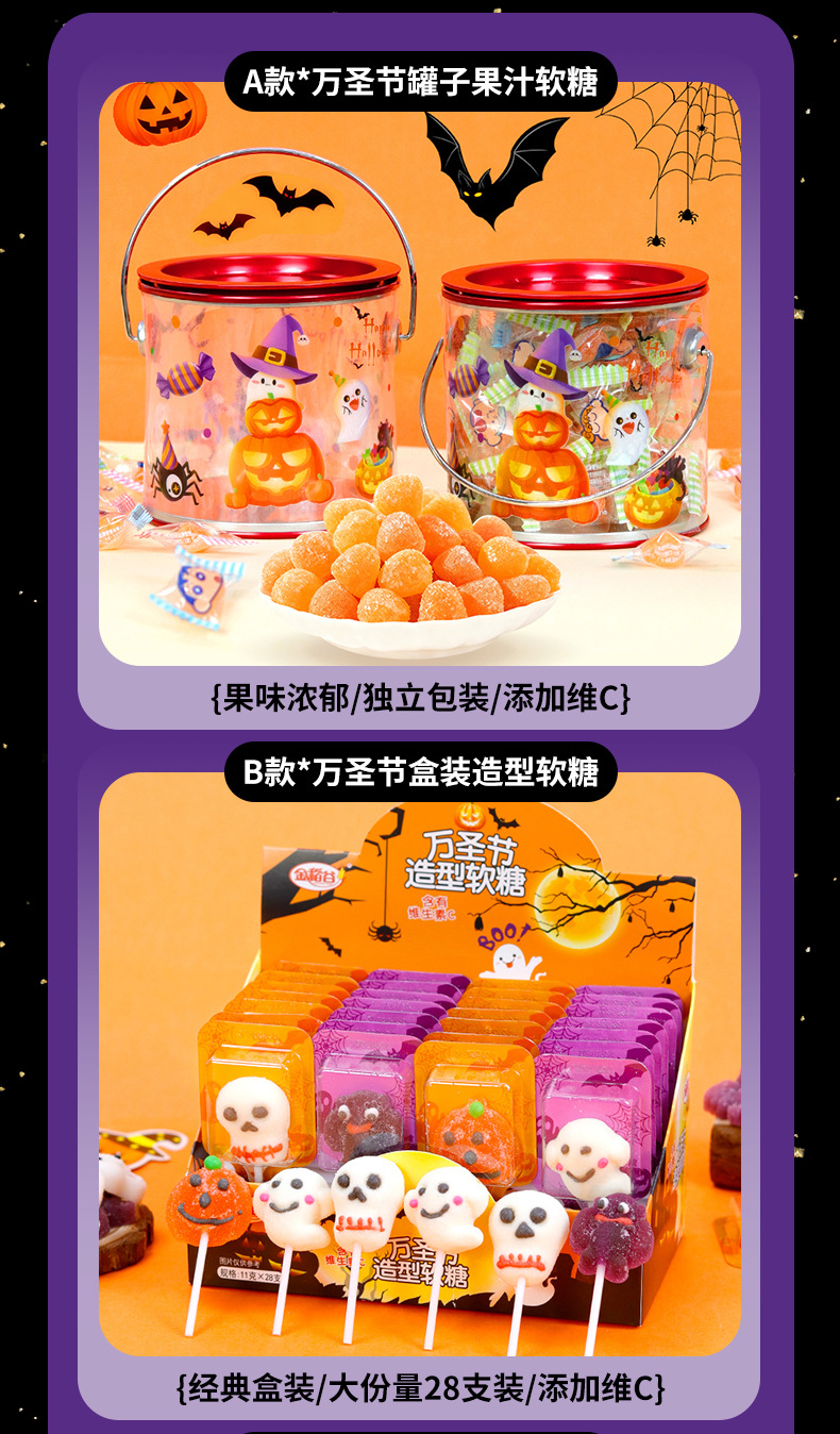 万圣节糖果手提罐100g果汁软糖趣味氛围节日休闲零食儿童分享批发