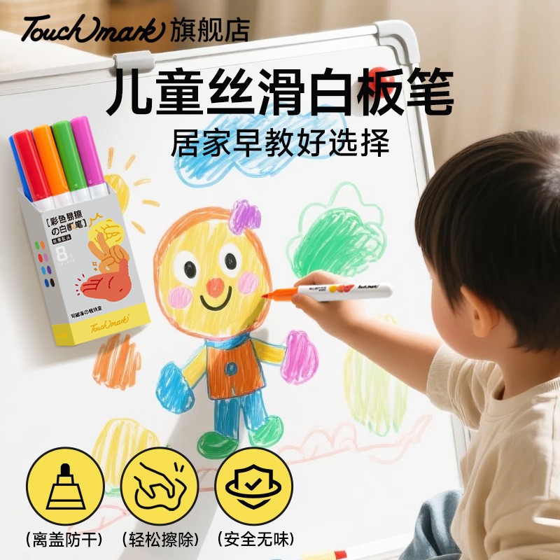 カラーマーカー ソフトヘッド 消去可能な子供用タッチマーク ホワイトボード ペン 消去しやすい落書き 手を汚さないホワイトボード ペン