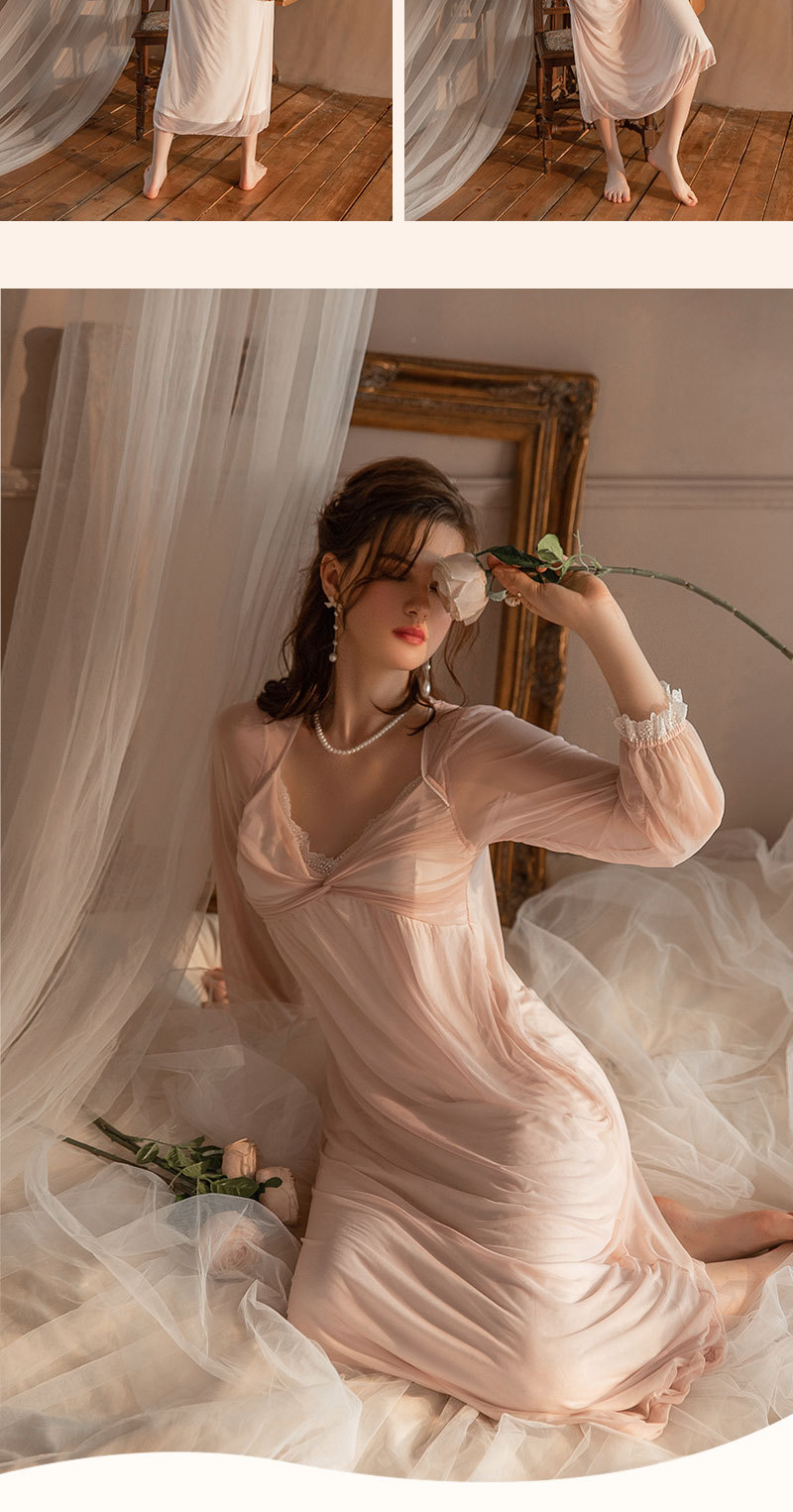 ライトラグジュアリーバーントラベルレースディープVサスペンダーナイトガウンインピュアセクシースタイルY字型美背中パジャマとナイトガウンセット