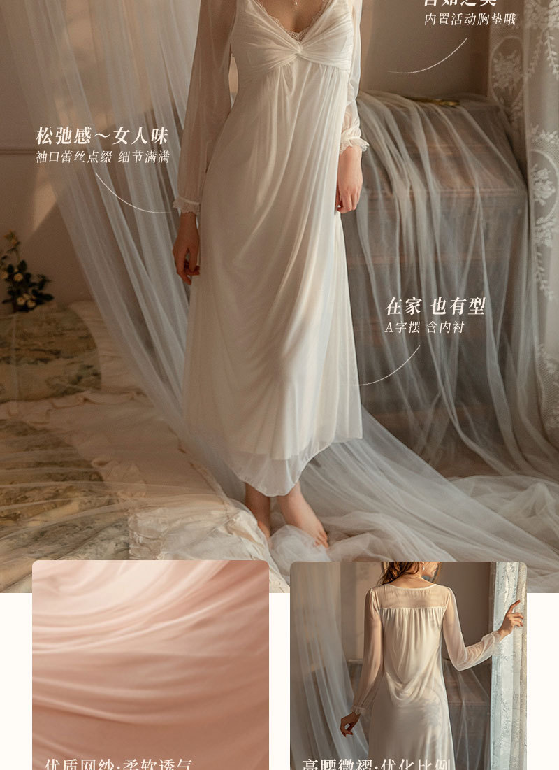 フランス式王女風vネック長袖アンドロメダ綿大サイズのパジャマネット糸春夏甘い膝を越えて快適な家庭服女性
