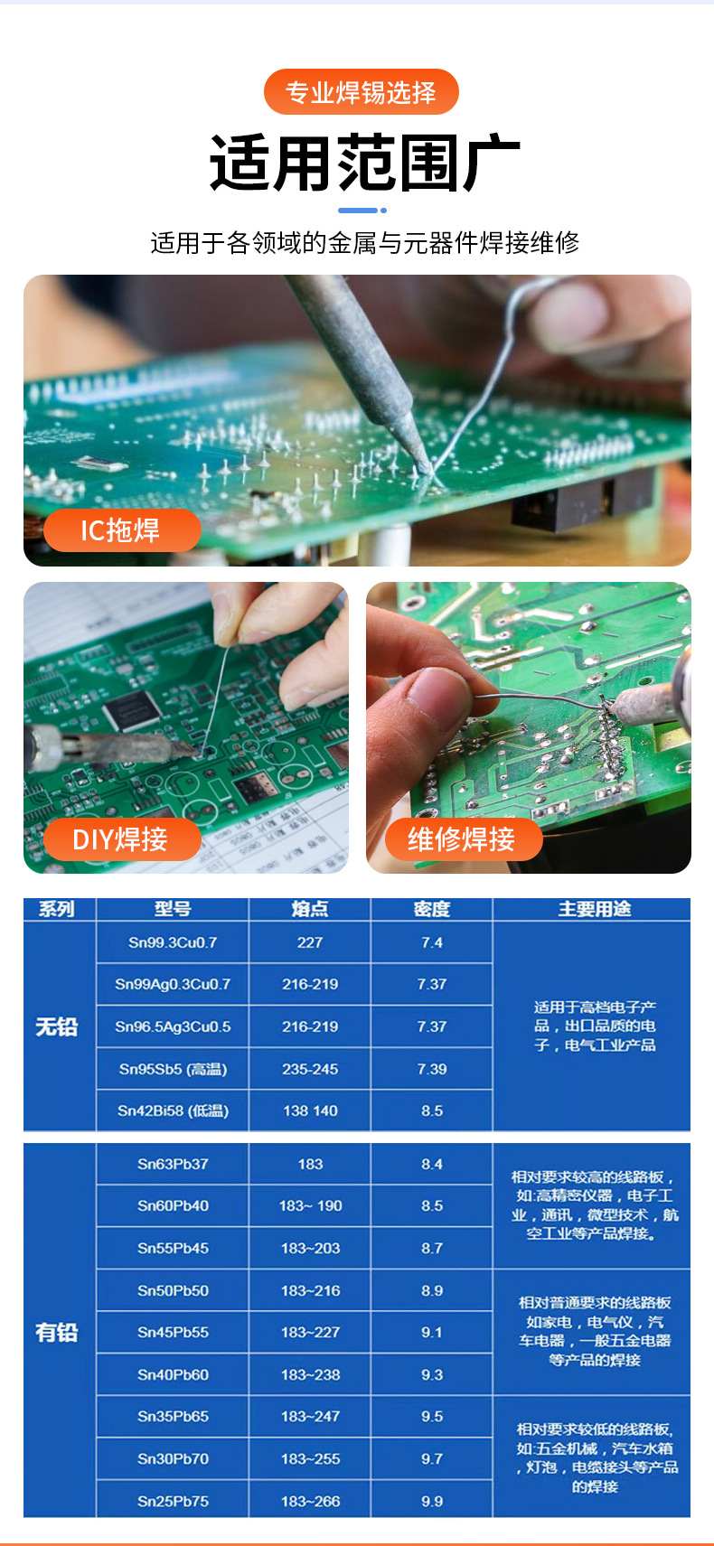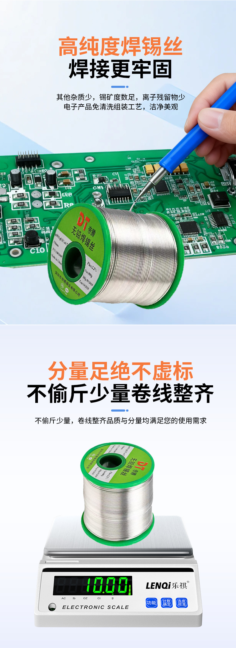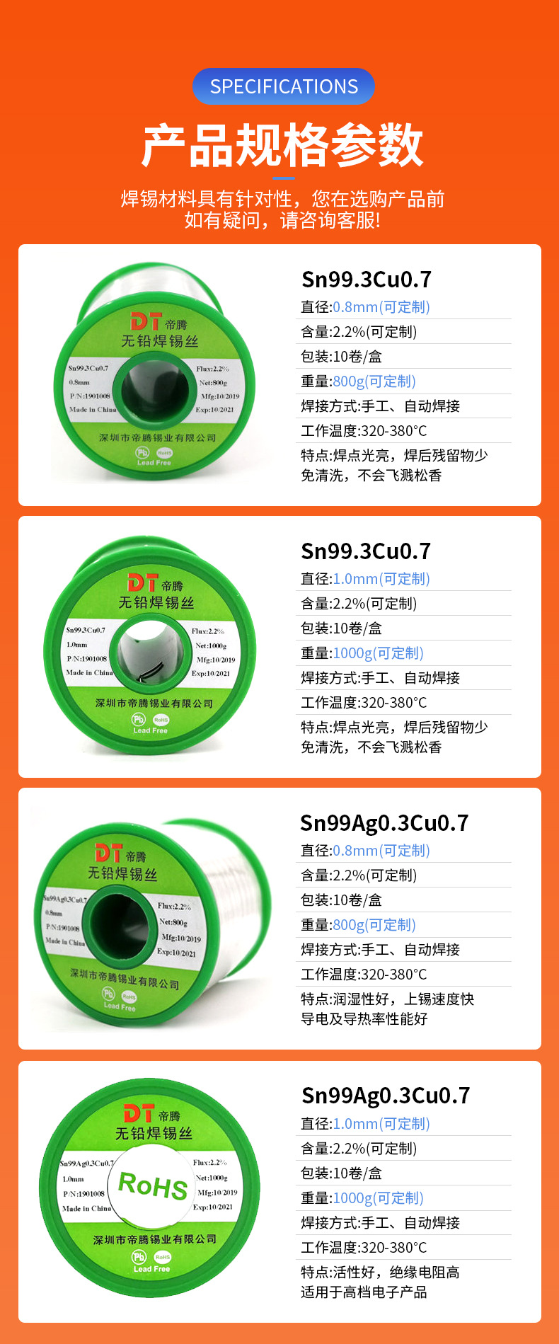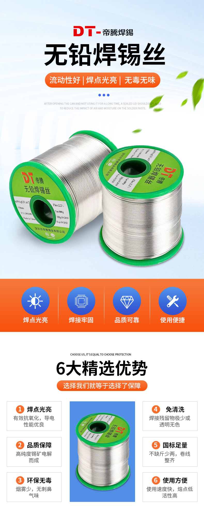 帝騰6337鉛溶接錫線1.0mmロジン芯無洗浄錫線高純度錫線溶接点光沢