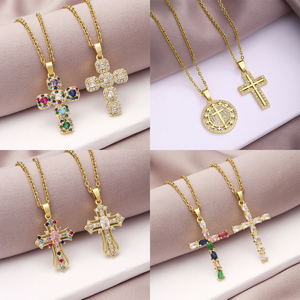 欧米のクロスボーダーの新型銅はジルコンのクロスのペンダントのネックレスの潮流の経典のパンクの風のクロスの首のチェーンを入れます。