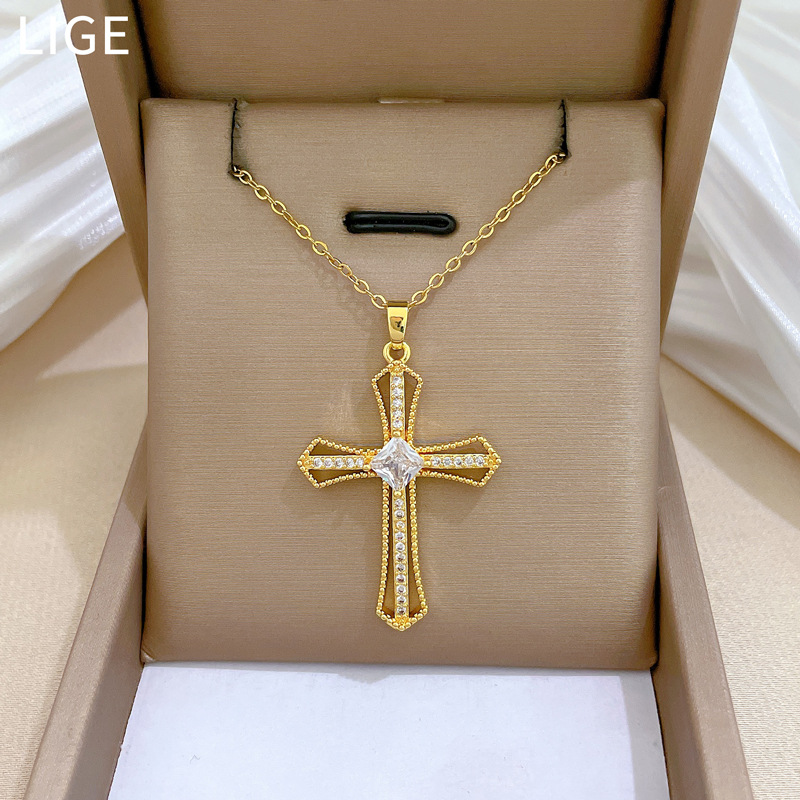 国境を越えたレトロなパンククロスネックレス個性ジルコンクロスペンダント欧米の小衆チタン鋼鎖骨ネックレス