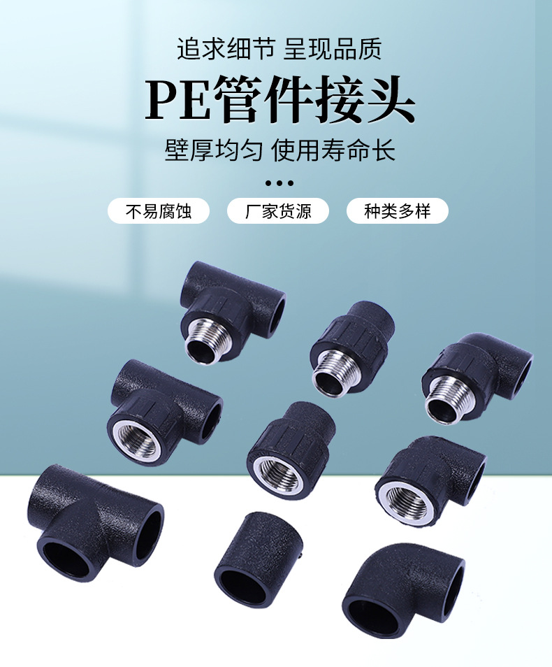 黒色pe水道管部品水道管内糸直接dn20四分から110メーカー直販高圧継手