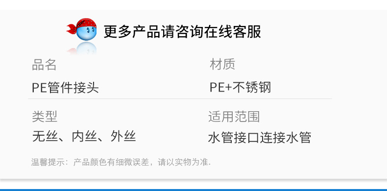 pe快接免热熔管件活接头直接开关弯头三通阀门堵头蓝帽快接厂家