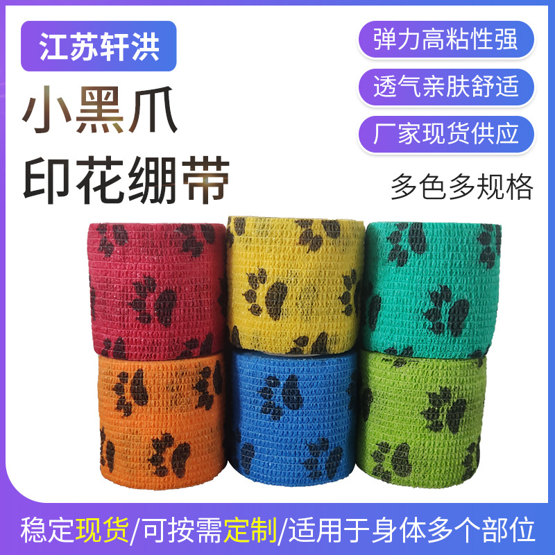 メーカー直販不織布プリント黒爪自己粘弾性ペット包帯運動防護一組6個包帯