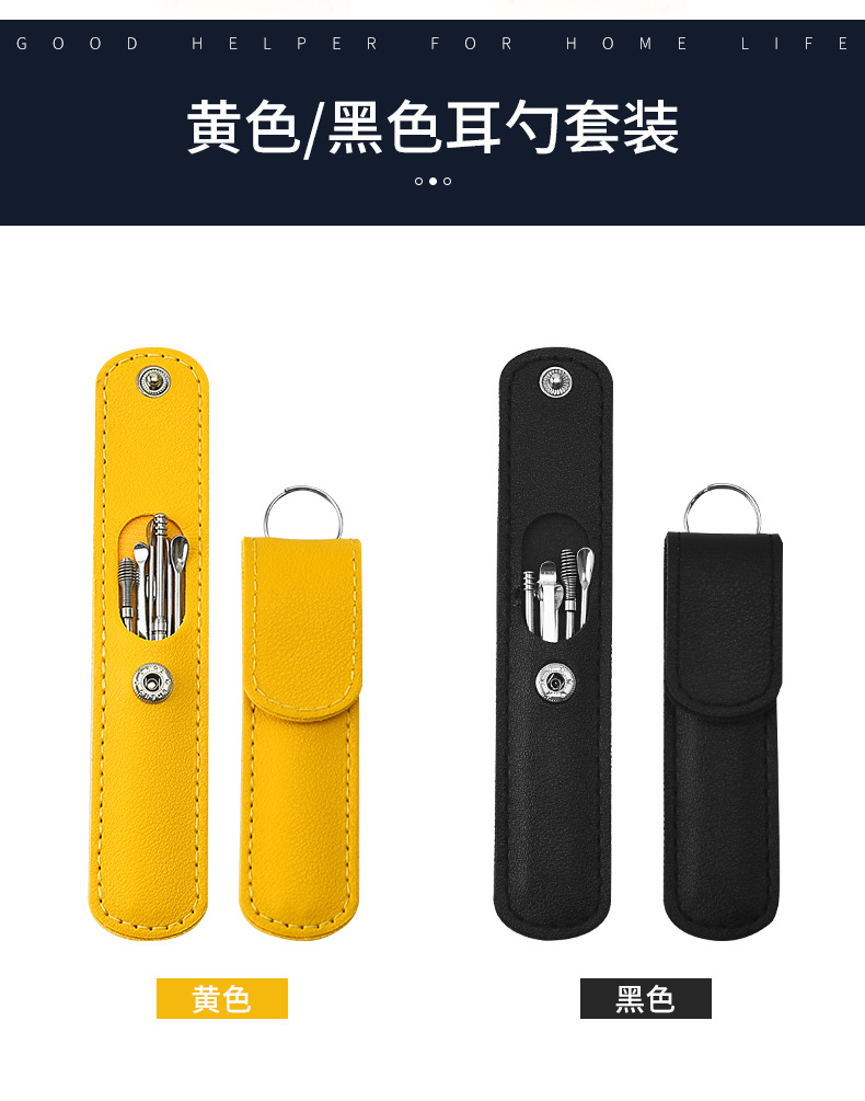 仕様 耳さじ6点セット【革カバータイプ】イエロー,耳さじ6点セット【革カバータイプ】ブラック