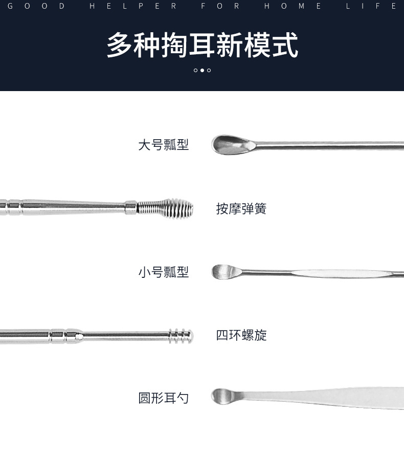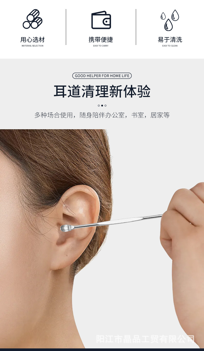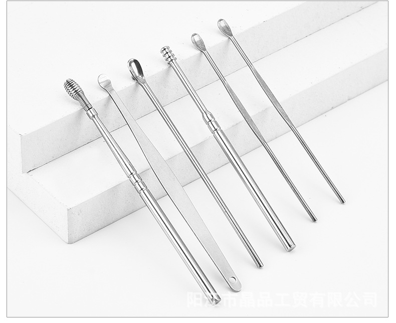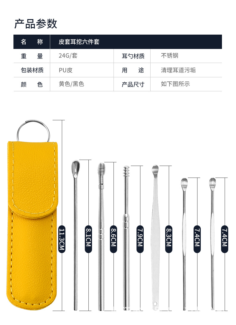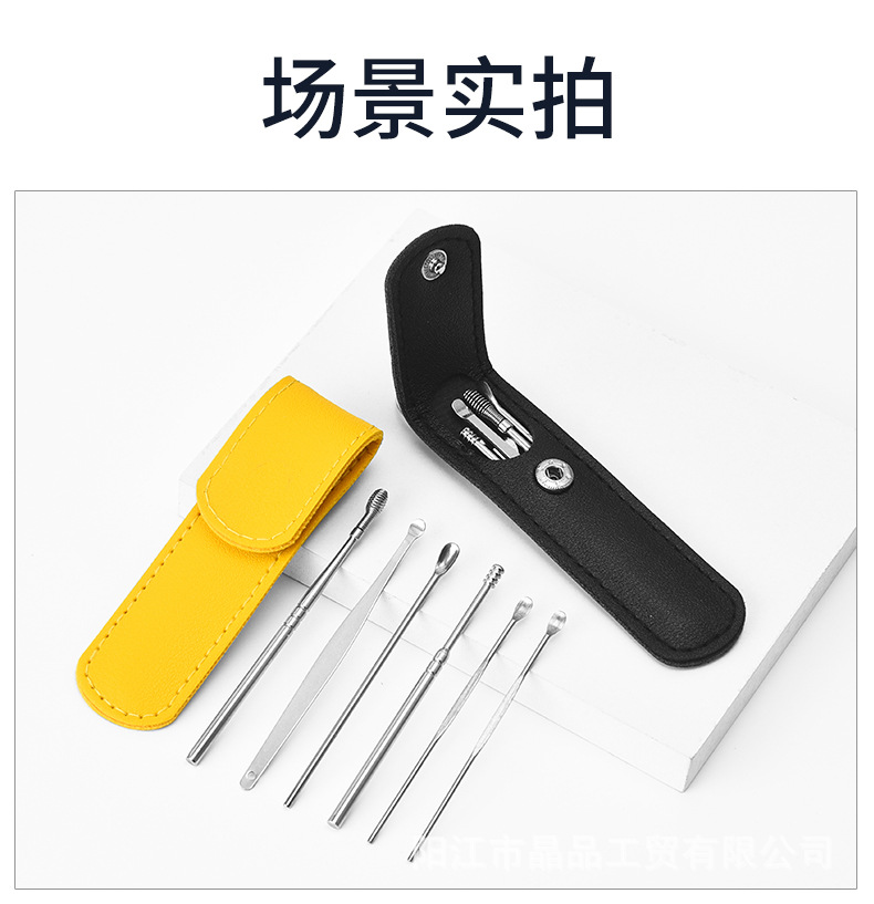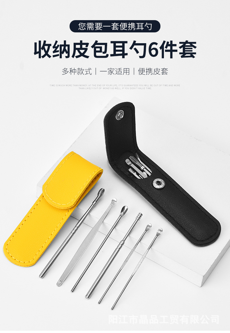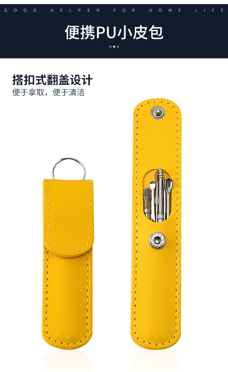 ステンレス製耳抜きスプーン携帯耳抜きスプーン6点セット耳掻採耳皮カバースプリングスパイラル汚れ除去ツール
