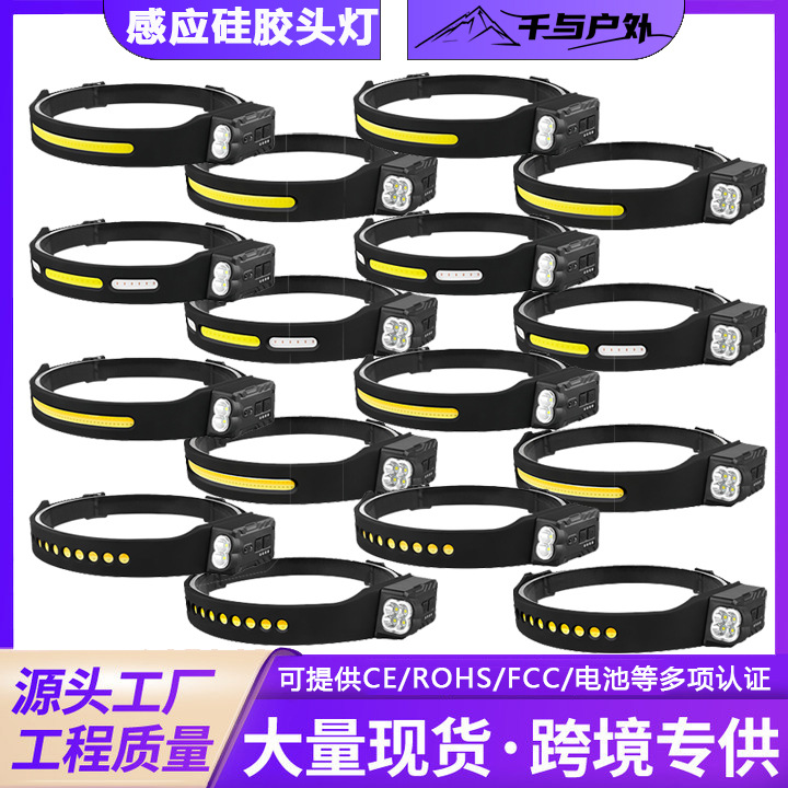 跨境感应头灯硅胶双光源头灯COB头灯充电夜跑骑行野露营感应头灯