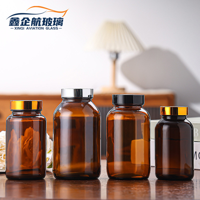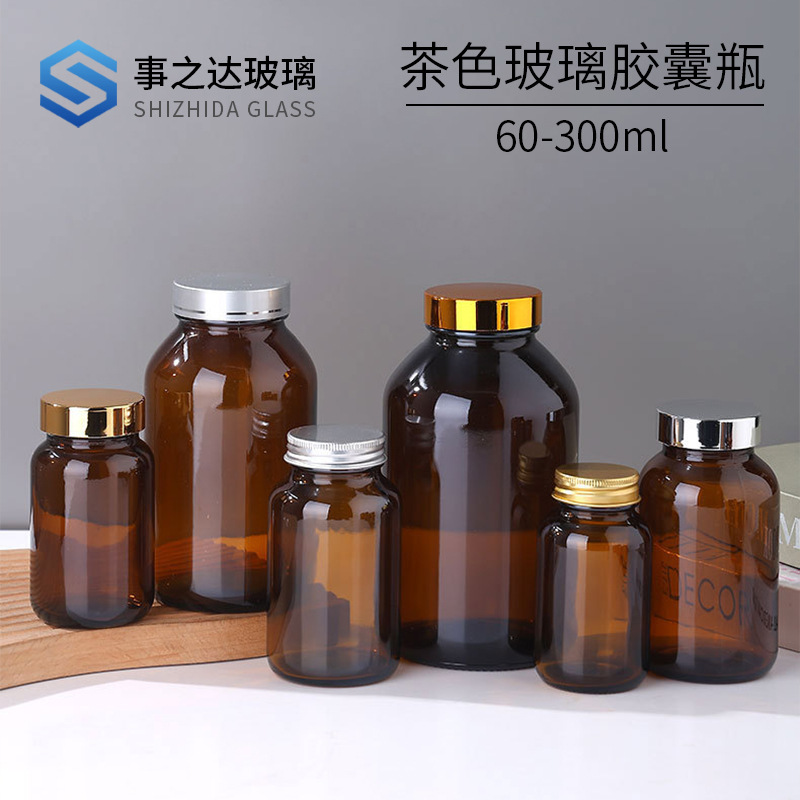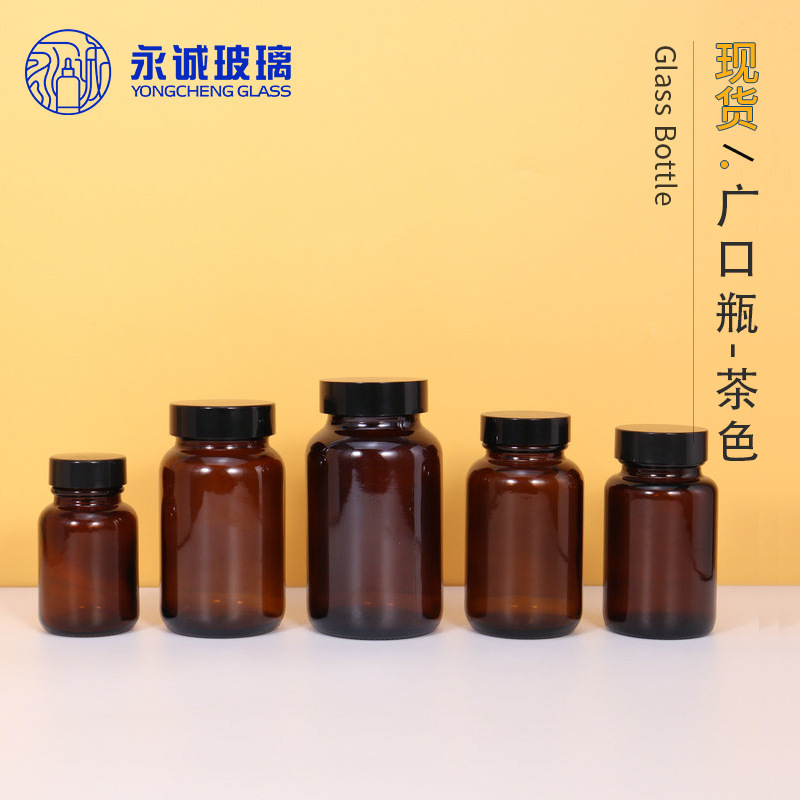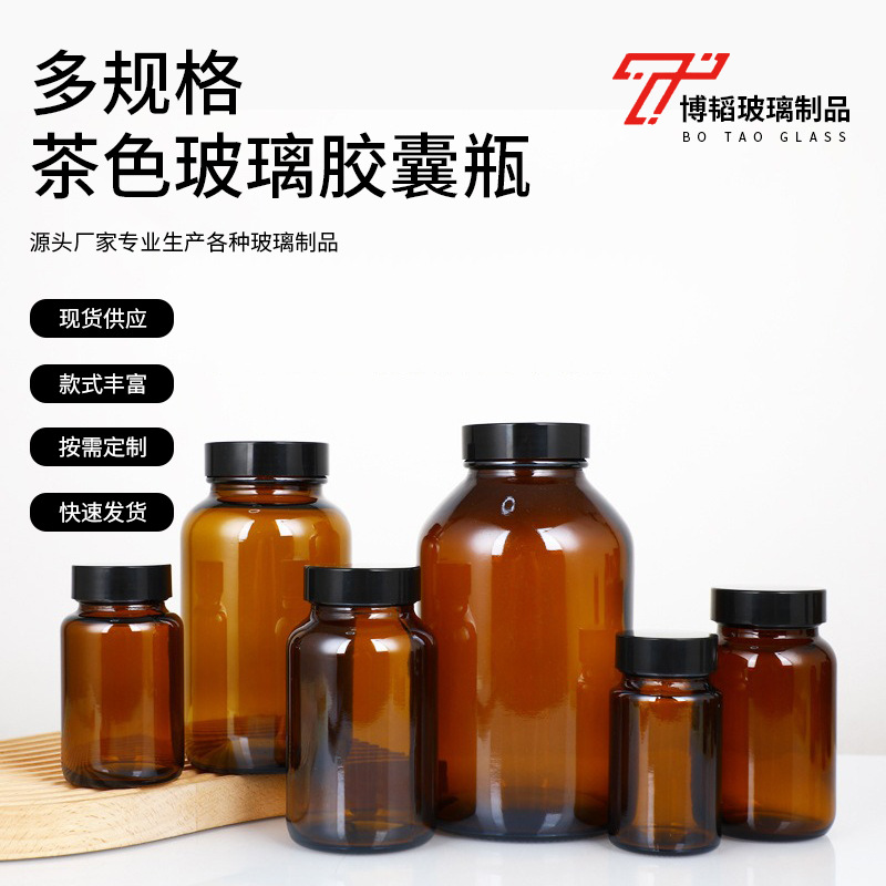 茶色玻璃胶囊瓶保健品避光螺口胶囊瓶棕色密封广口药用样品试剂瓶