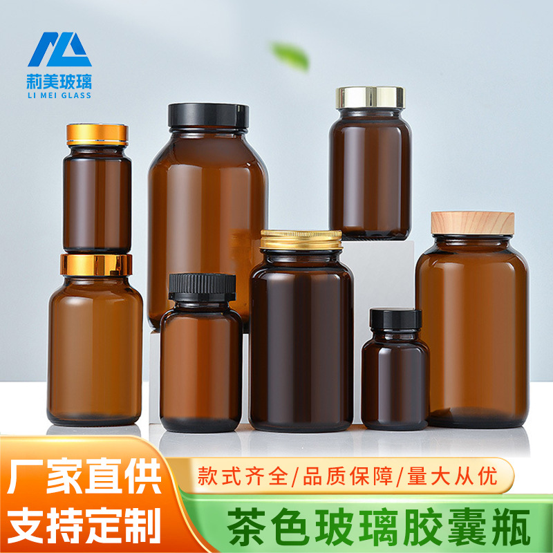 卸売り茶色蓋付きカプセル瓶茶色薬粉ガラス瓶密封小薬瓶健康食品空瓶現物