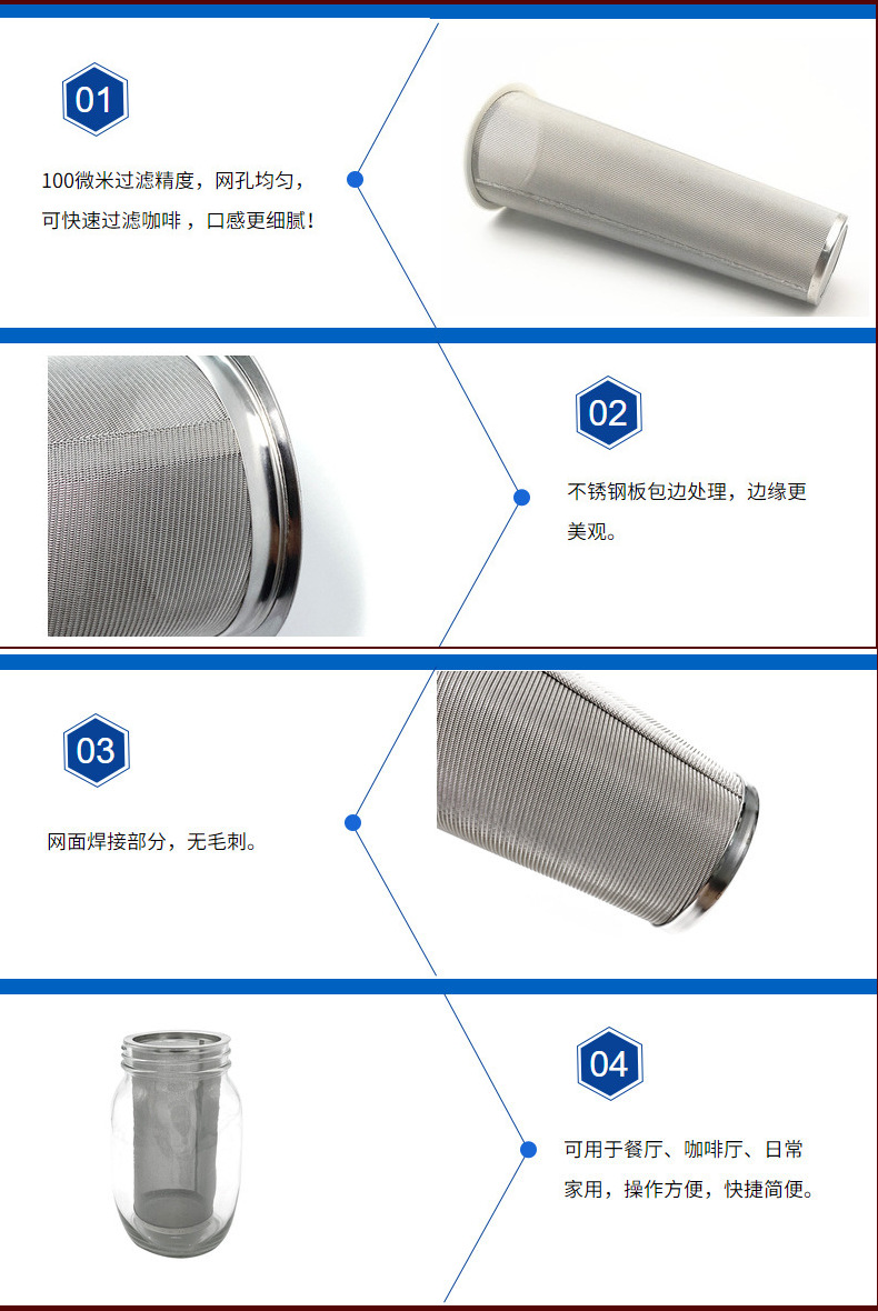 現物コーヒーフィルターのメイソン缶セットフィルター304ステンレス冷泡コーヒーフィルター