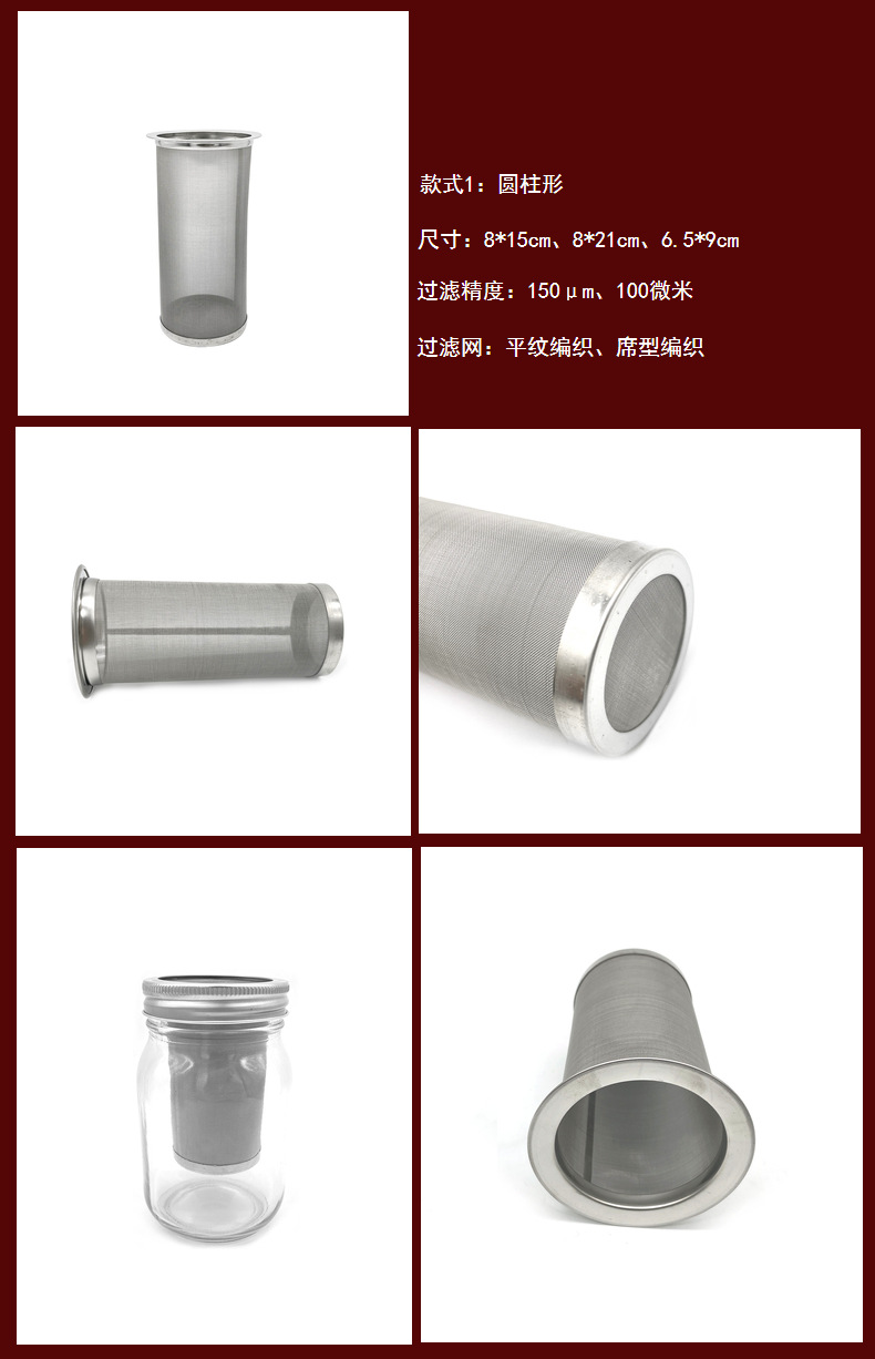 メーカー現物50目食品級304ステンレス単フックビール濾過筒ブドウ果皮ステンレス濾過筒