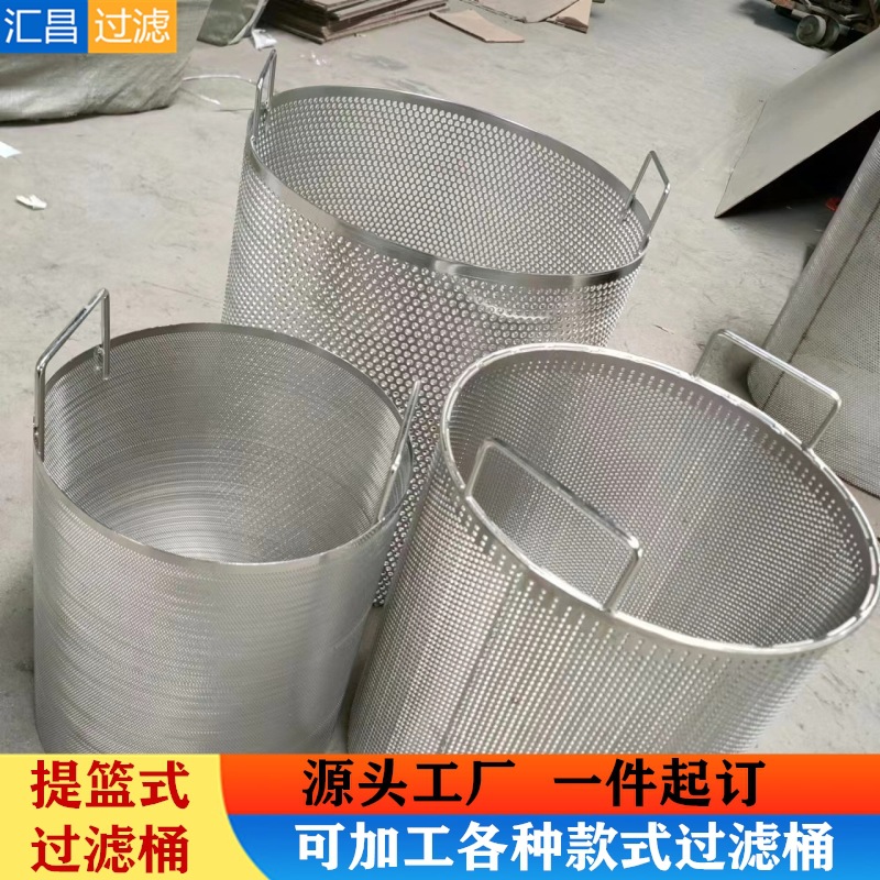 304 ステンレス鋼パンチングフィルター円筒形ブドウ圧搾フィルターバレル酒ビールフィルターバレルハンドル付き