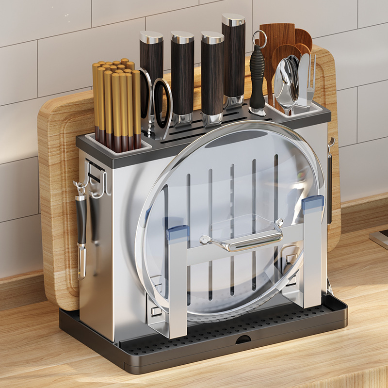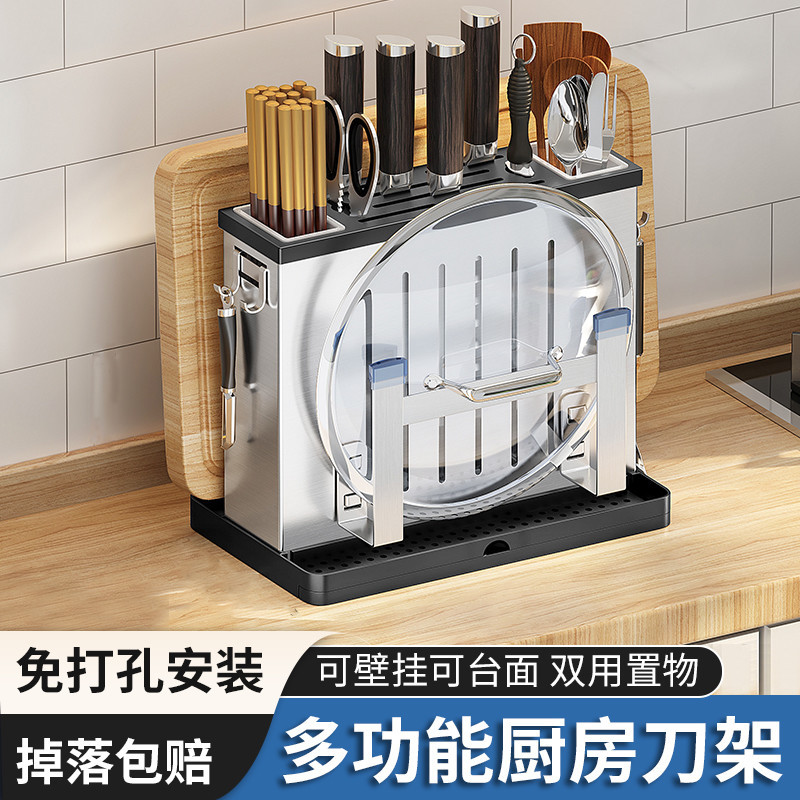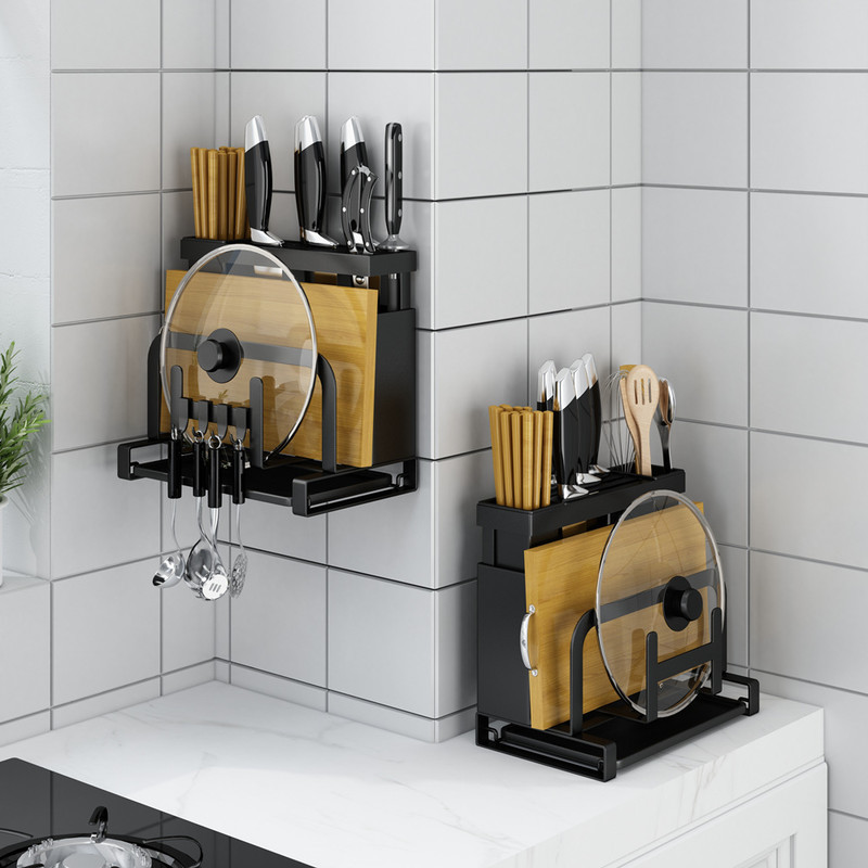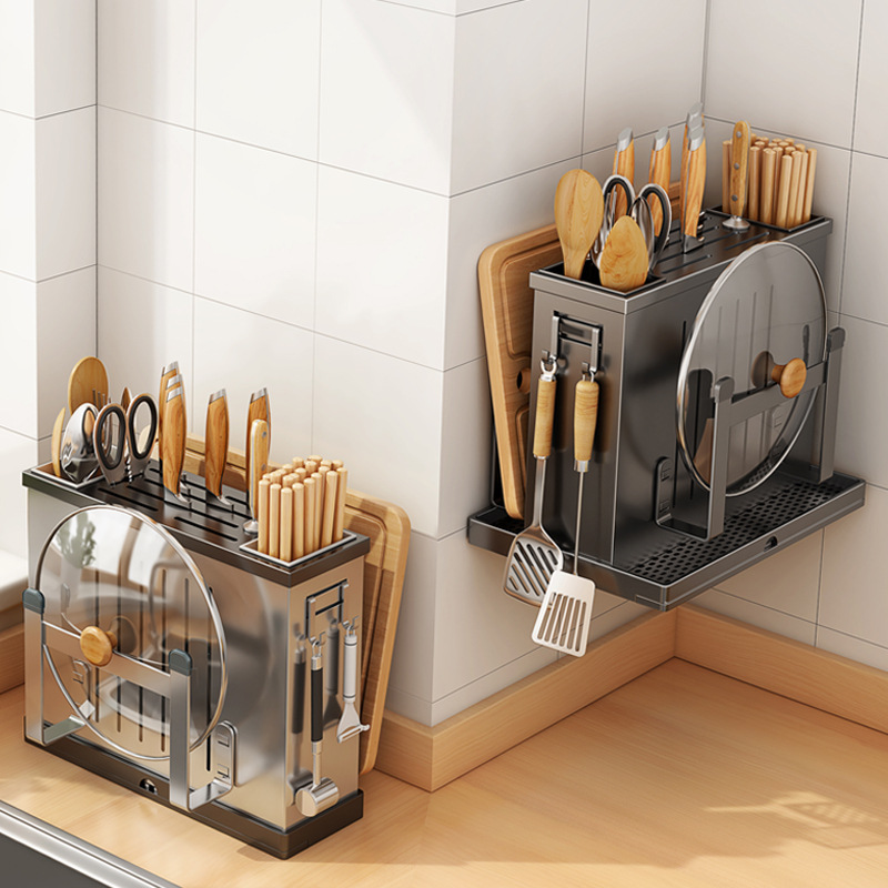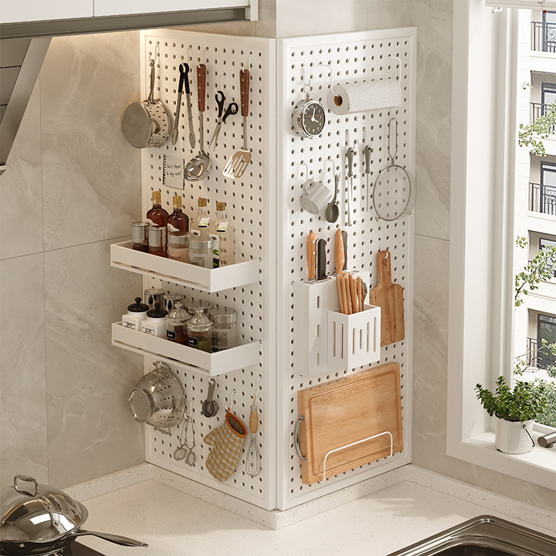 台所の棚の穴の板のステンレスの壁の調味料の棚の壁掛けの刀の棚の家庭用多機能の収納棚