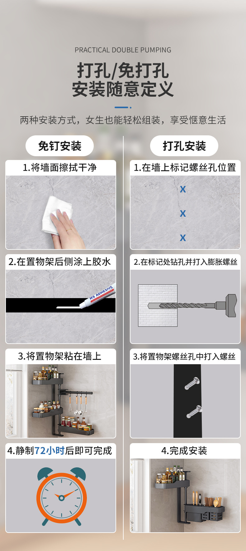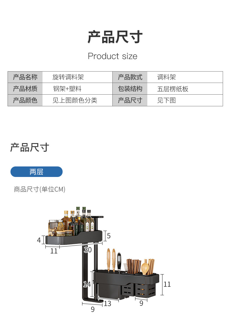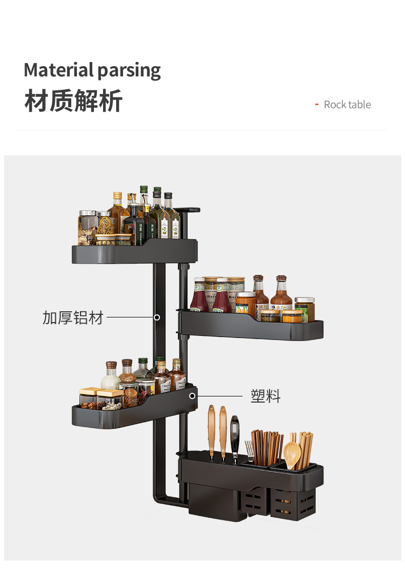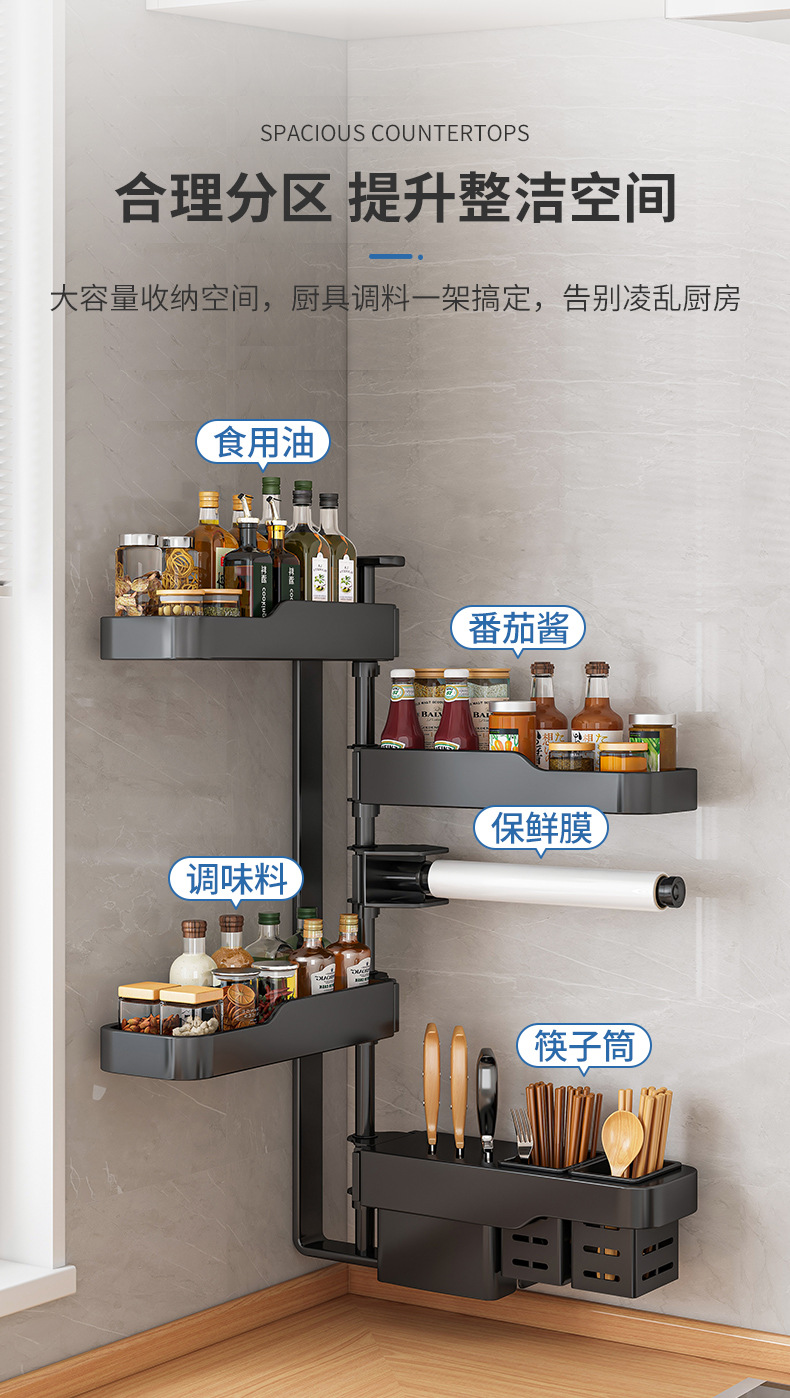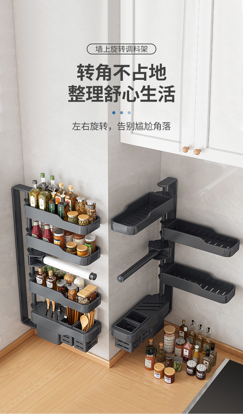 キッチン回転調味料棚家庭用品ホルダー箸棚調味料穴なし壁掛け収納棚