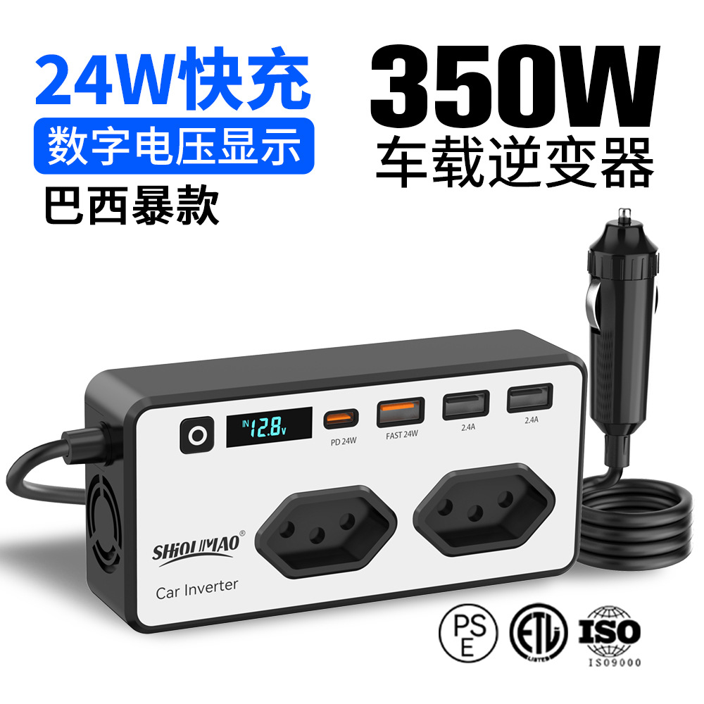 跨境外贸PD口快充小汽车用逆变器350W带显示巴西规车载逆变器爆款