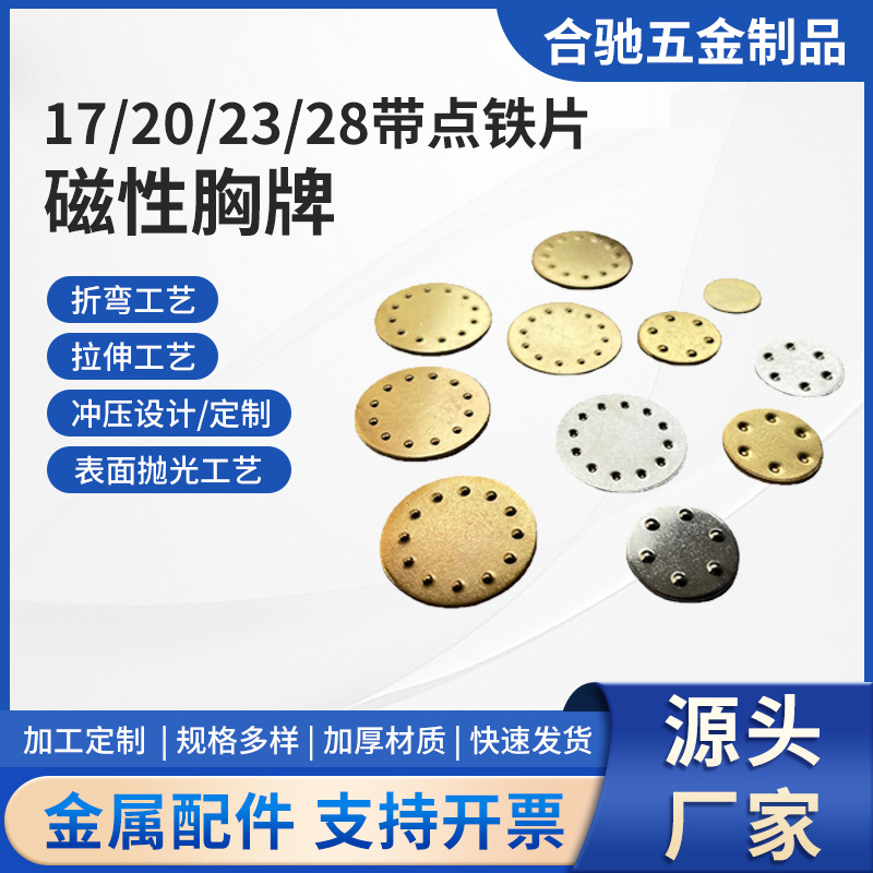 工場直供円形帯点鉄片バッジ磁気胸牌ステンレス工牌強磁力鉄ボタン金属胸牌